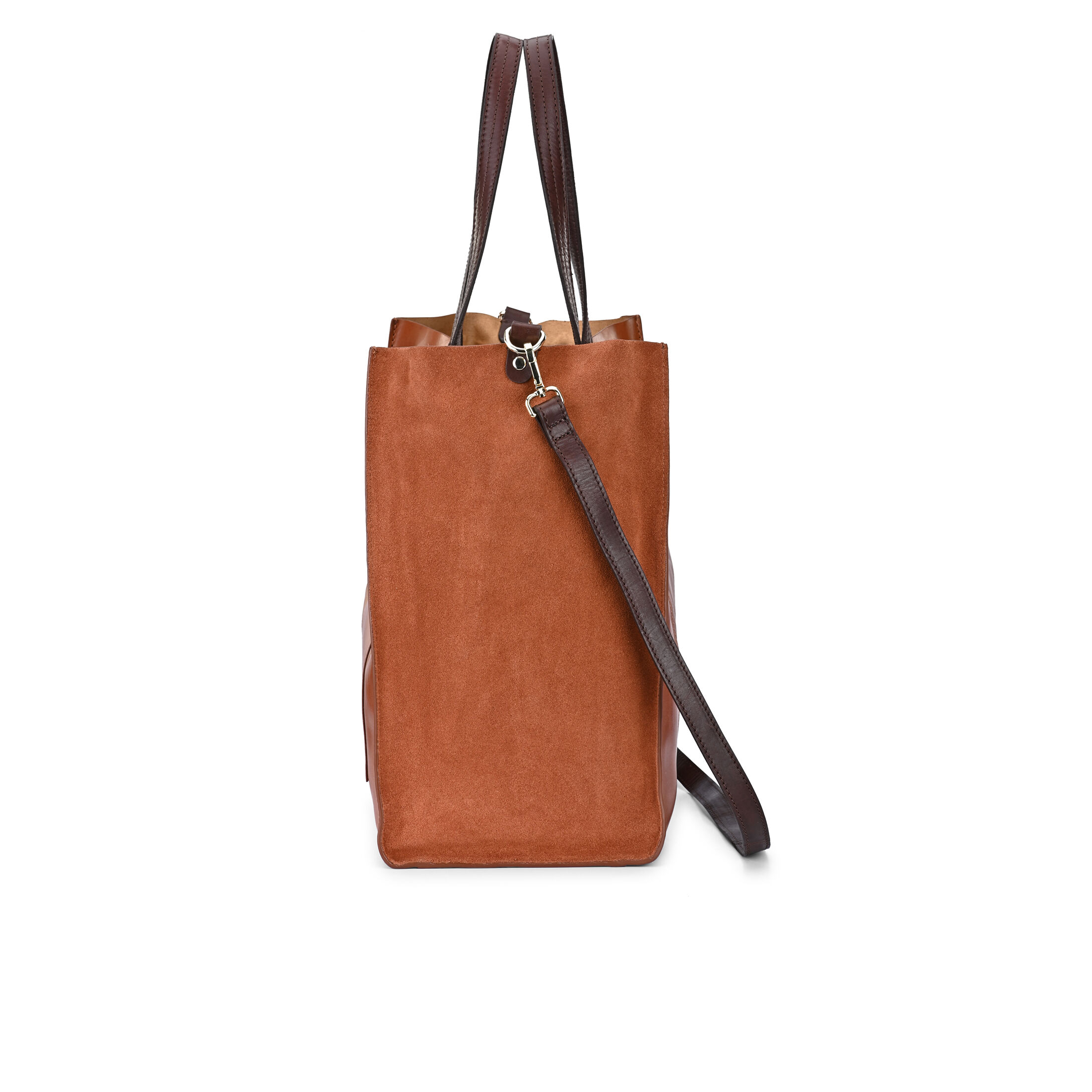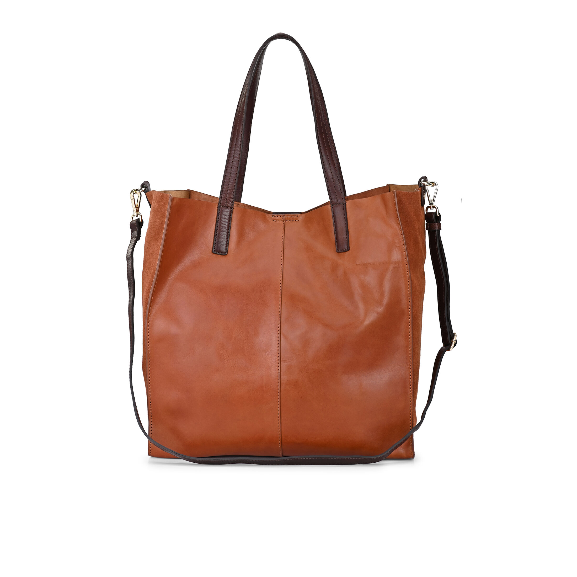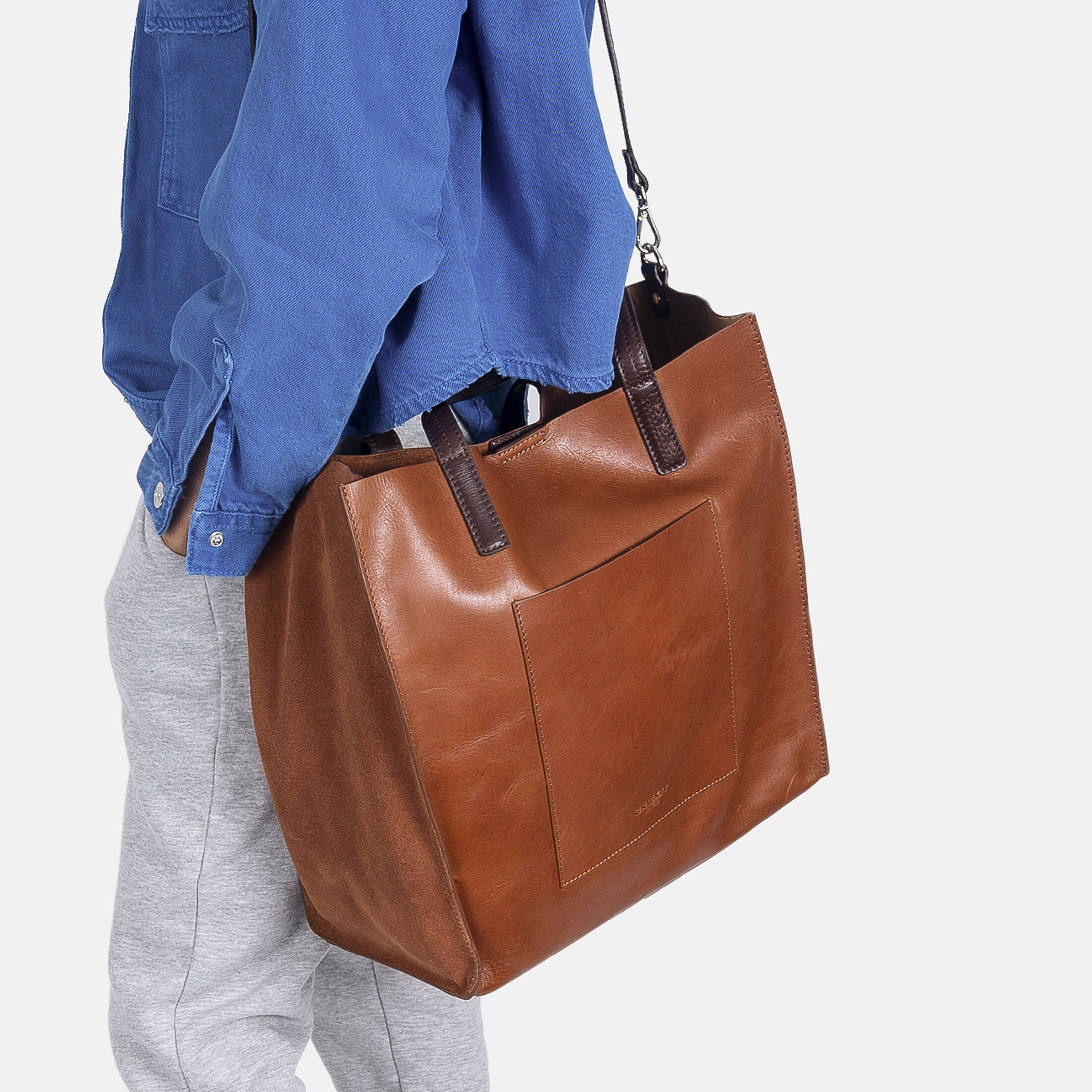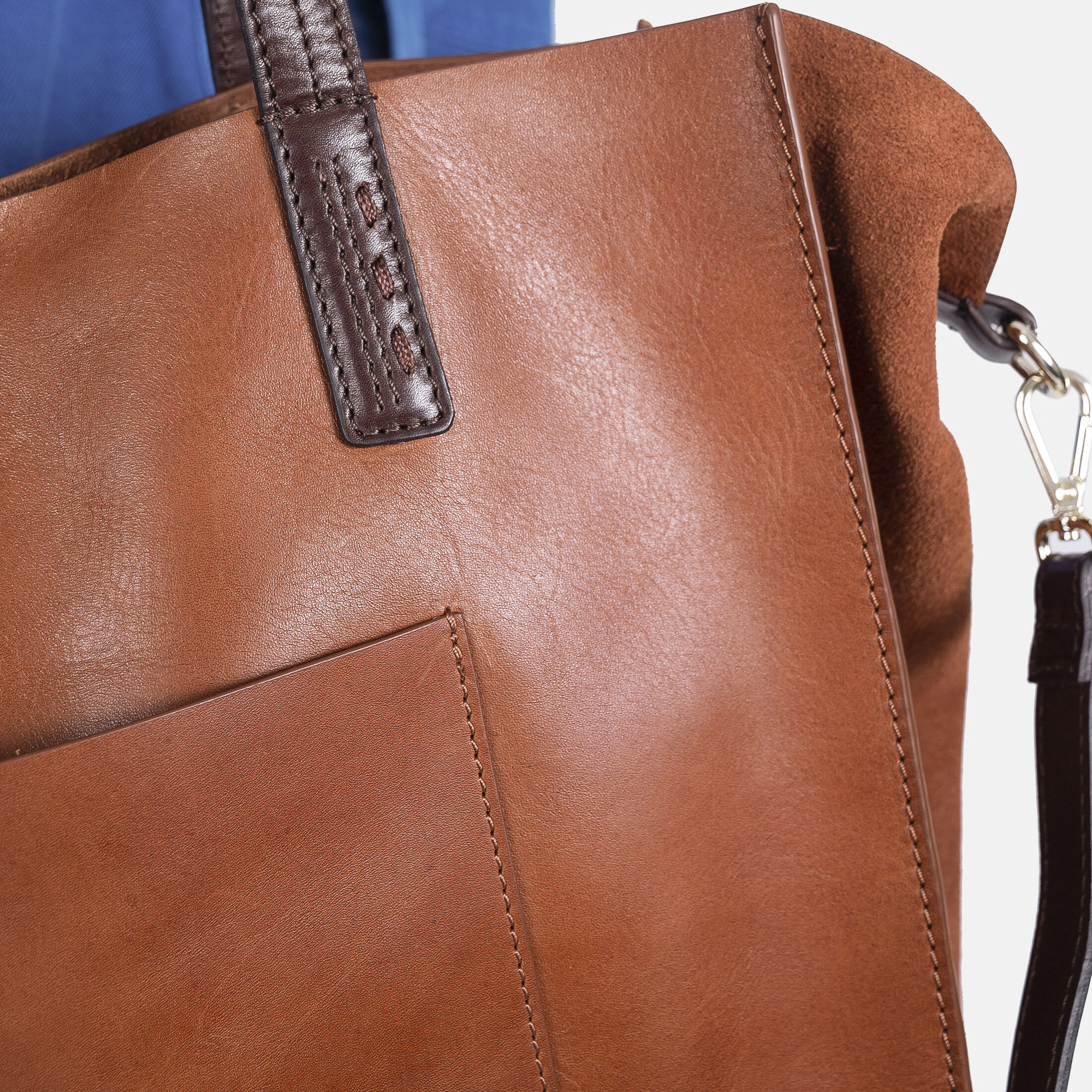 Shopper Handtasche aus hochwertigem Leder und Wildleder in Cognac mit Fronttasche und Herz