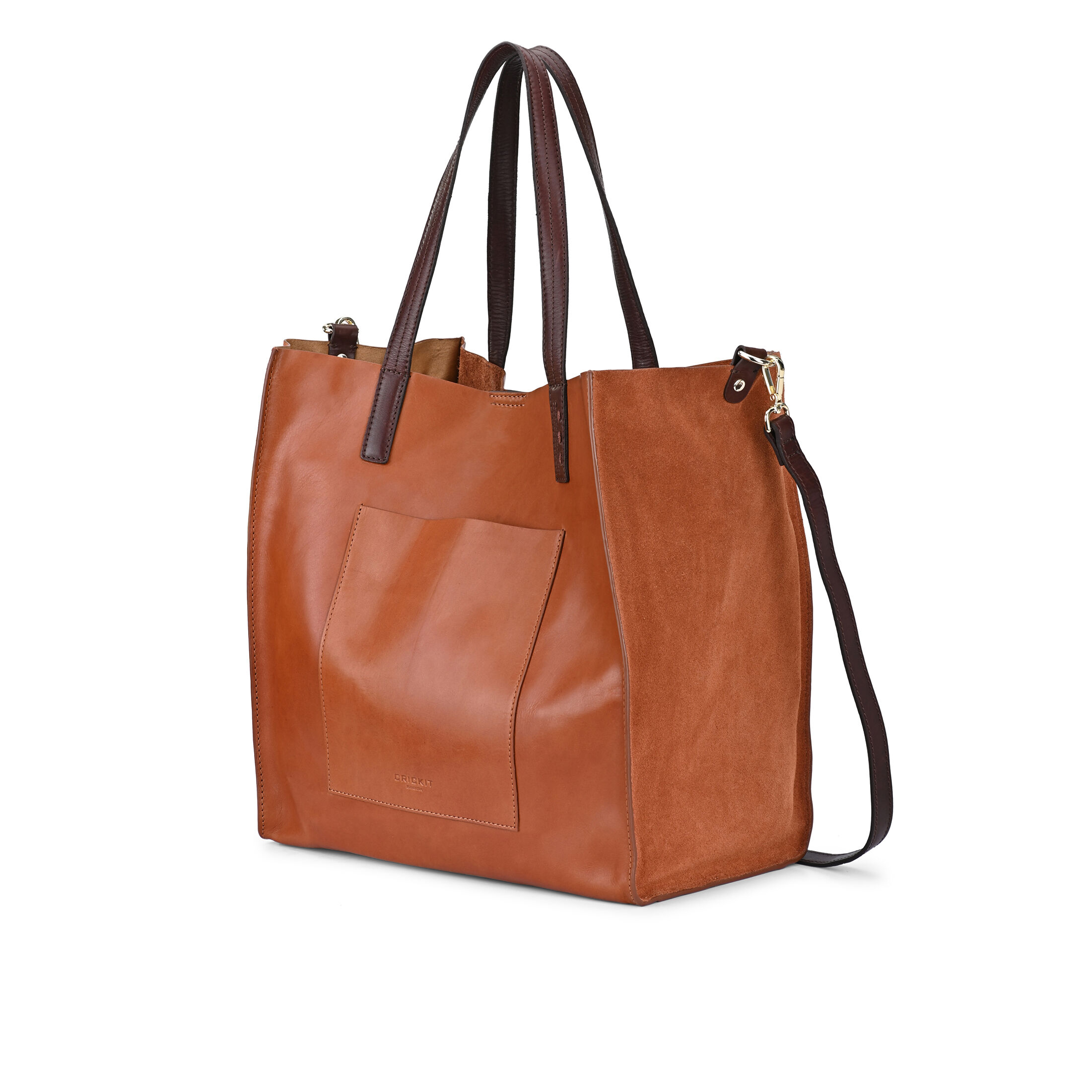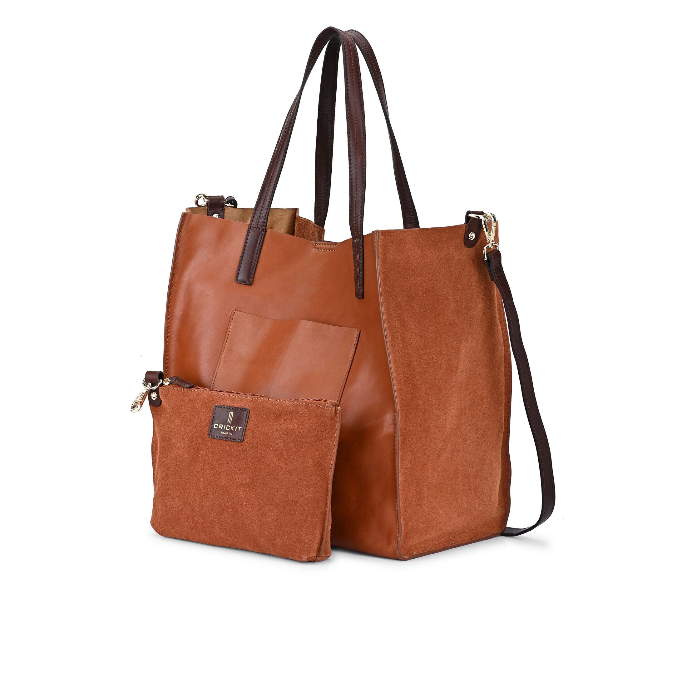 “Taschen sind wie Freunde, du kannst nie genug haben….!” Deshalb sollte die angesagte Shopper Umhängetasche CALLIOPE auf keinen Fall fehlen! Besonders ist die zweite Tasche in der Tasche -„two for one“ sozusagen. Aus hochwertigem natürlichen Leder in Cognac mit Fronttasche bietet sie viel Platz und die mit Karabiner befestigte Wildleder Innentasche den schnellen Griff fürs Wesentliche! Gleichzeitig kann diese multifunktional auch in anderen Taschen genutzt werden. Crossbody oder über der Schulter zu tragen ist es eine praktische Sache egal ob Business oder Shopping. Das ist CRICKIT – besonderes Design aus Hamburg.