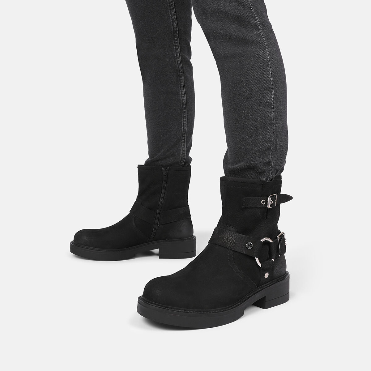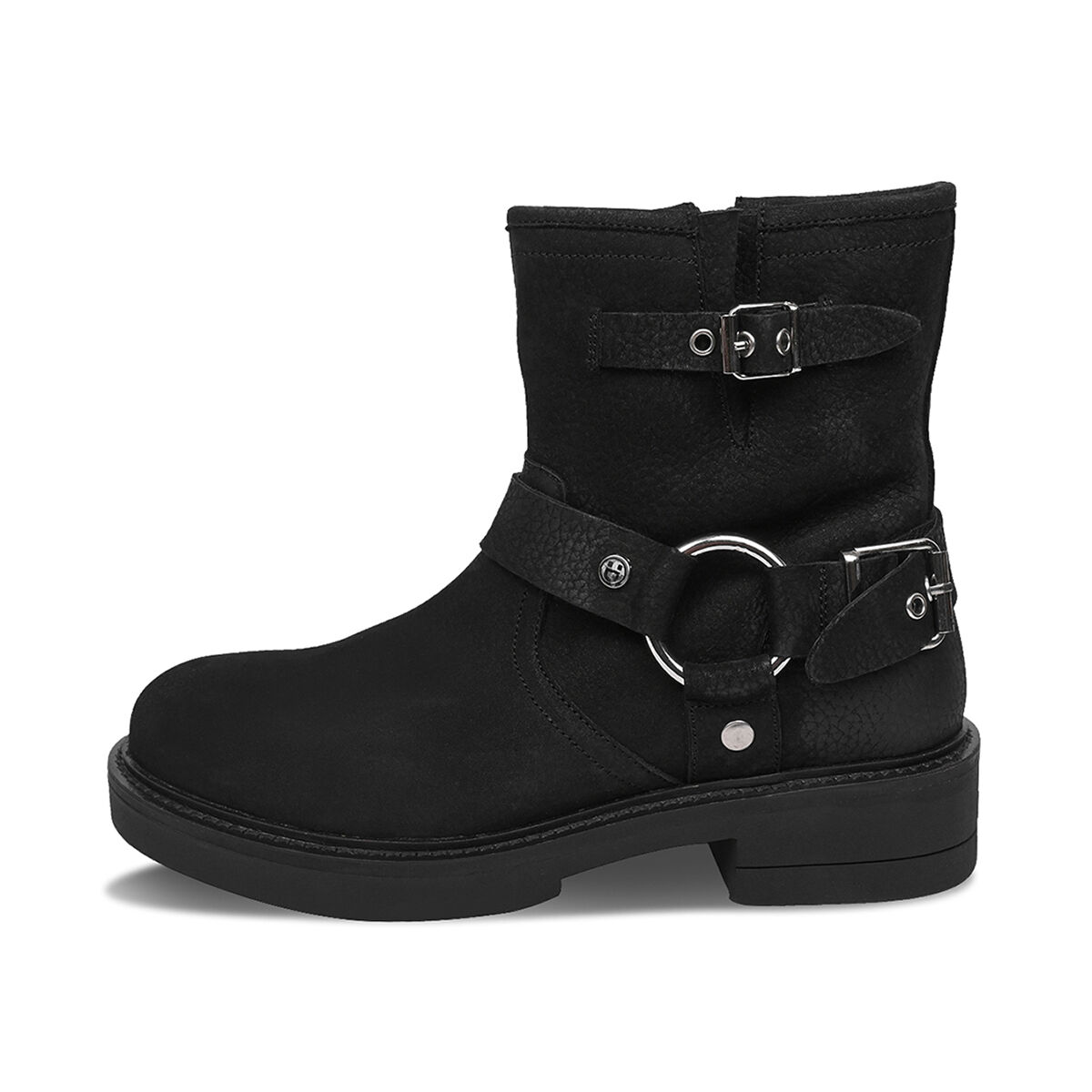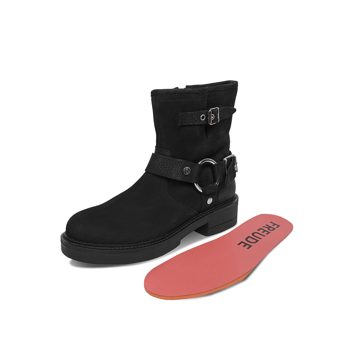 Du suchst einen Klassiker, mit dem du immer im Trend liegst und der bequem ist? Dann bist du hiermit fündig geworden! BILLY ist eine Biker-Stiefelette aus weichem Rindsleder in Schwarz und mit rutschfester TPR Sohle. BILLY passt sich so perfekt den individuellen Bedürfnissen deiner Füße an. Durch die typischen Biker-Schnallen beweist BILLY die Liebe für Details, die für extra FREUDE sorgen. Die klassische schwarze Farbe lässt sich zu all deinen Lieblingsoutfits kombinieren und verleiht dir immer einen coolen, rockigen Touch. Der Reißverschluss der Biker-Stiefelette befindet sich auf der Innenseite und ermöglicht schnelles An-und Ausziehen. Egal, ob beim nächsten Konzert oder auf deinem nächsten Date: BILLY überzeugt mit Coolness und Stil.