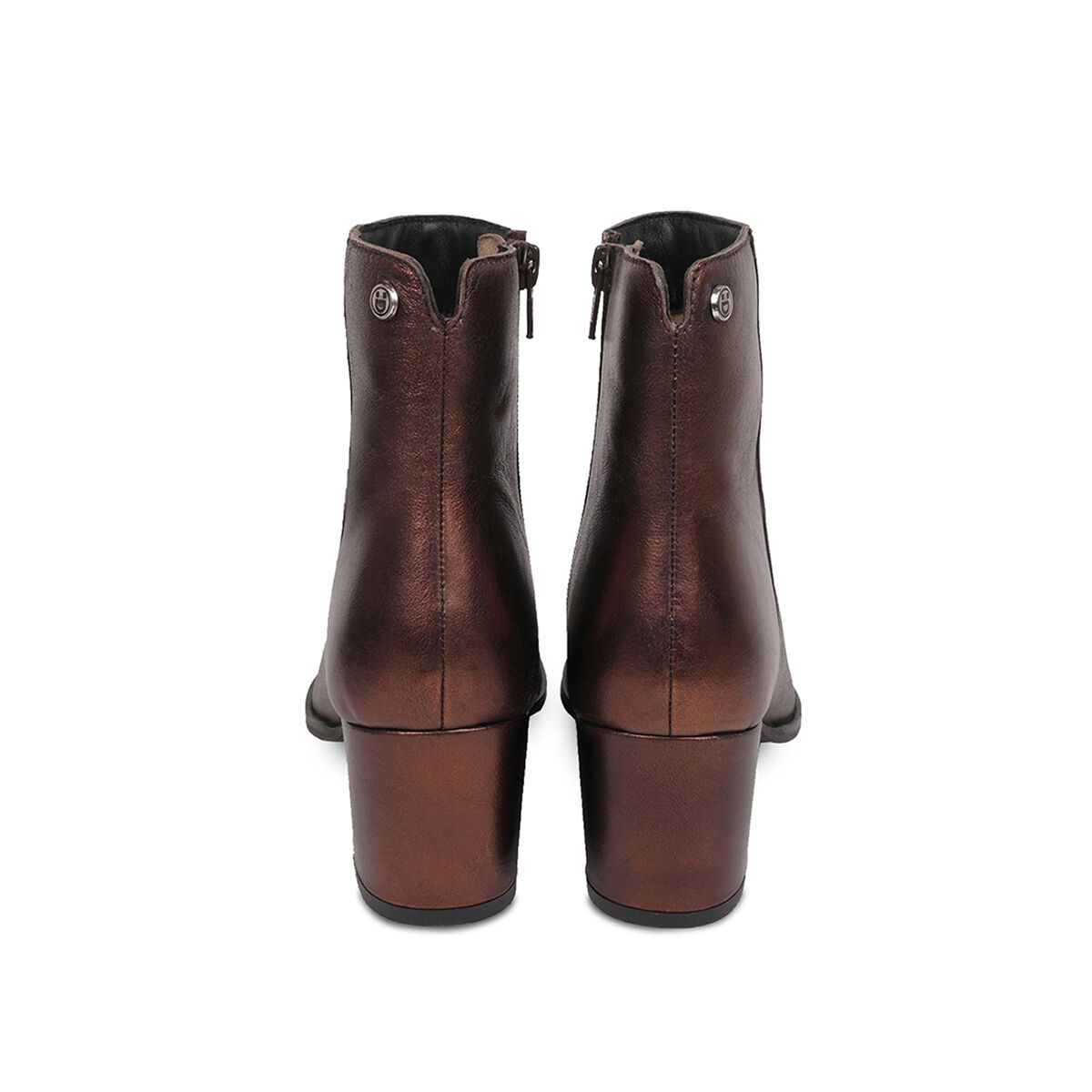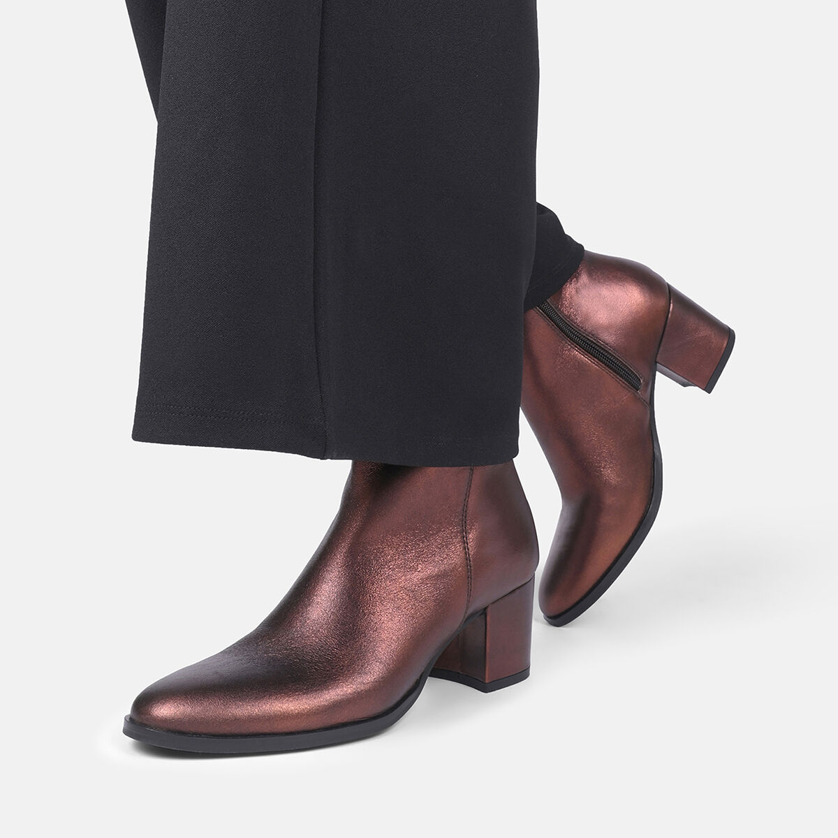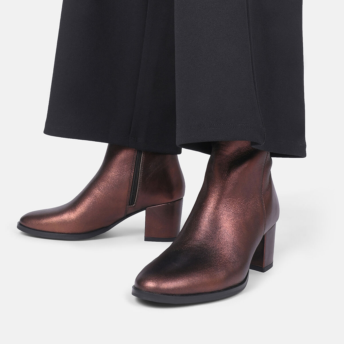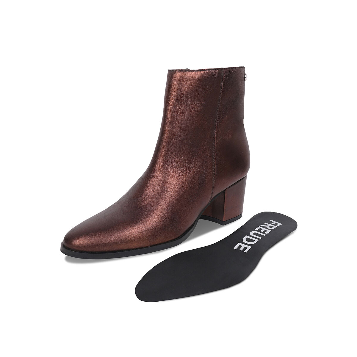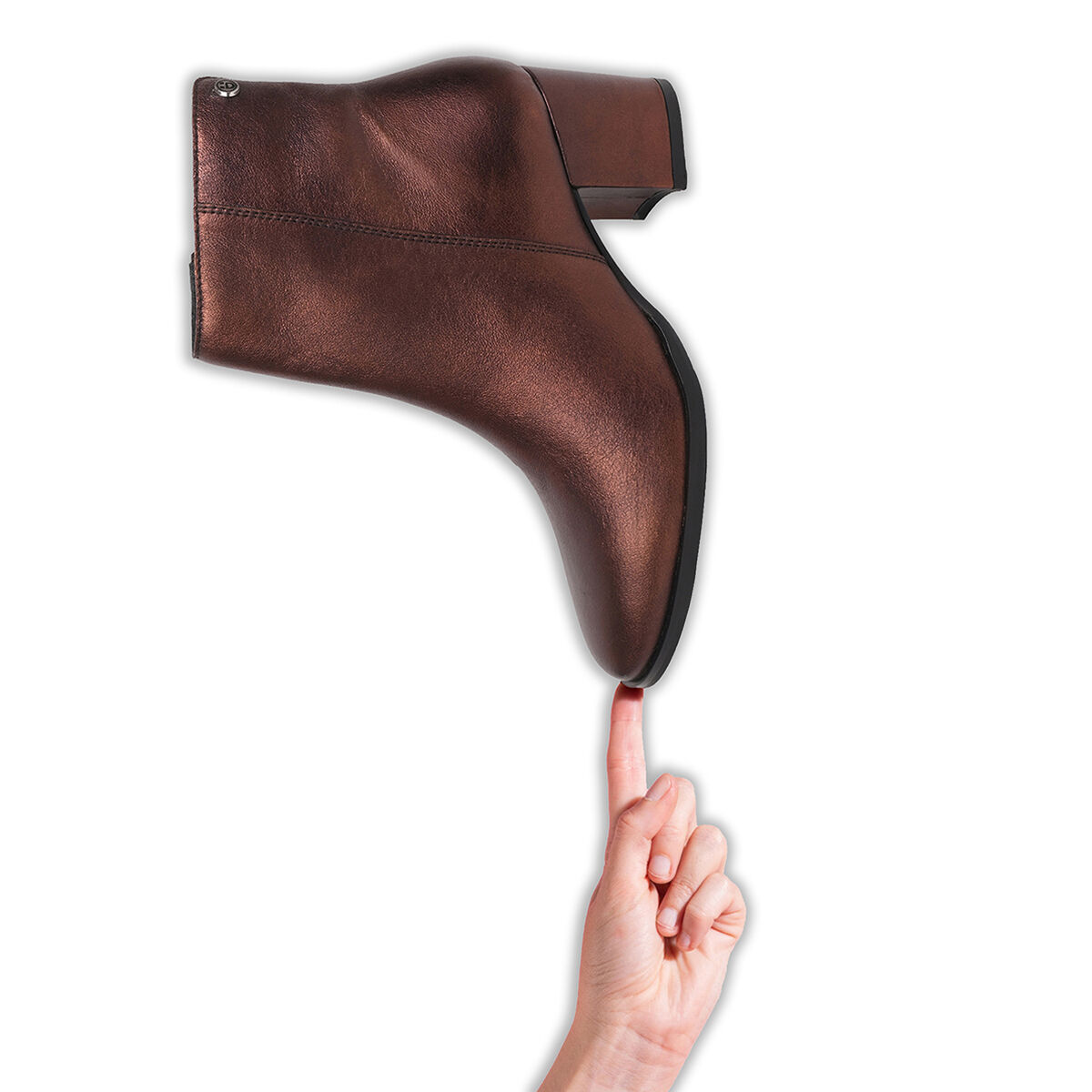Du liebst es stilsicher, schick und komfortabel unterwegs zu sein? Dann wird die FREUDE groß sein, wenn du auf BINNY triffst! Die Stiefelette mit Blockabsatz vereint Bequemlichkeit und Stil im Handumdrehen. Das Obermaterial in der Trendfarbe Bronze ist aus weichem Ziegenleder und passt sich sanft den individuellen Bedürfnissen deiner Füße an. Der Blockabsatz ermöglicht dir ein sicheres Auftreten und somit einen starken Auftritt. Die Ledersohle mit rutschfestem Gummieinsatz trägt dich entspannt von A nach B. Die Stiefelette lässt sich easy durch einen Reißverschluss an der Innenseite schließen. Egal, ob beim Shoppen oder zum ersten Date: Mit BINNY ist dir die FREUDE sicher!