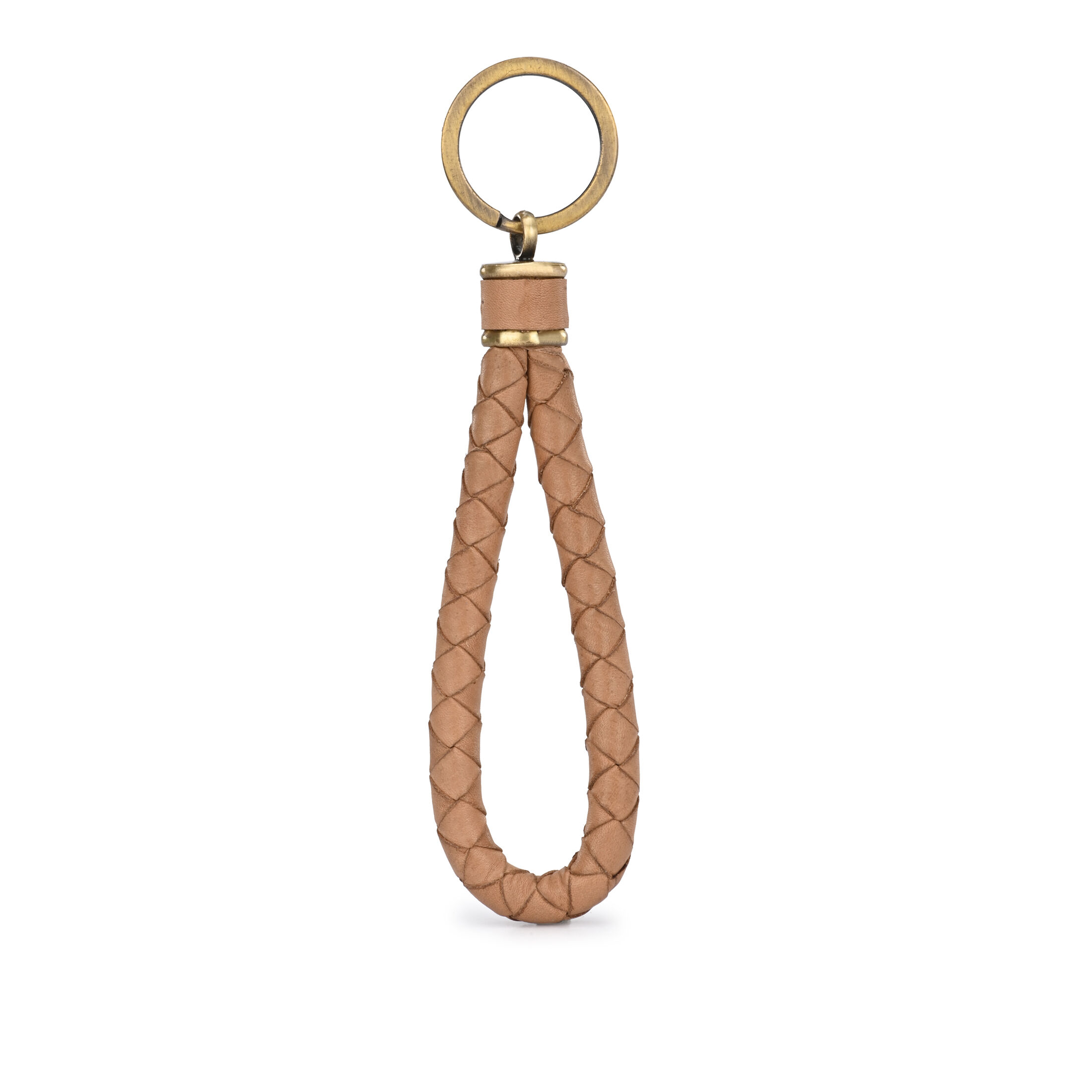Schlüsselanhänger Loop aus geflochtenem Leder in Camel