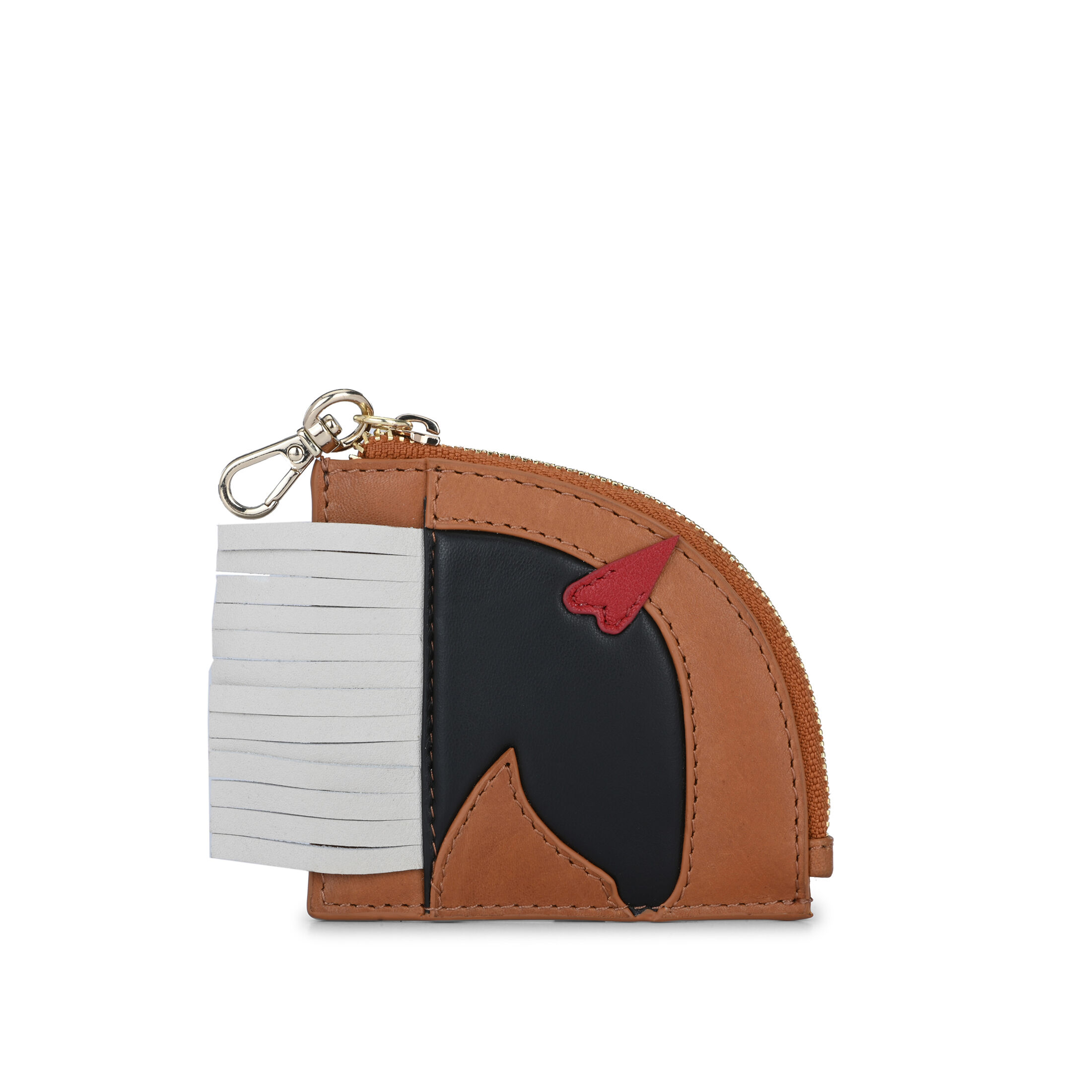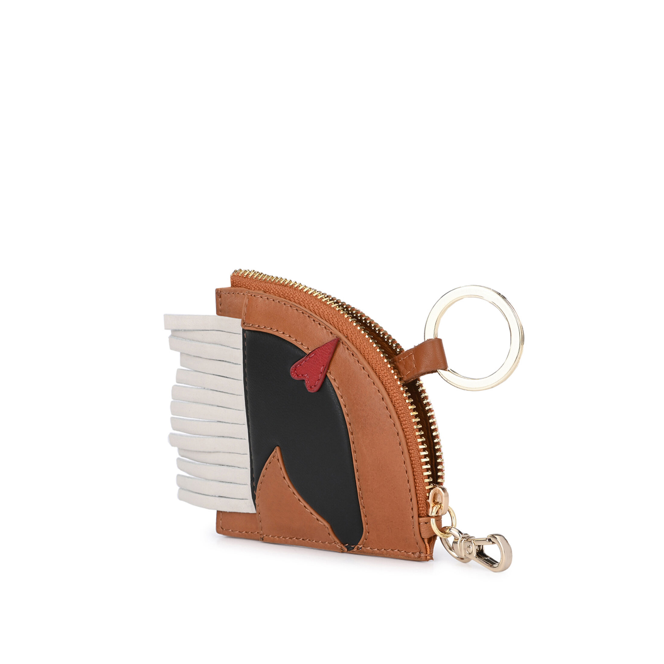 Portemonnaie Schlüsselanhänger Pferd aus Leder in Cognac