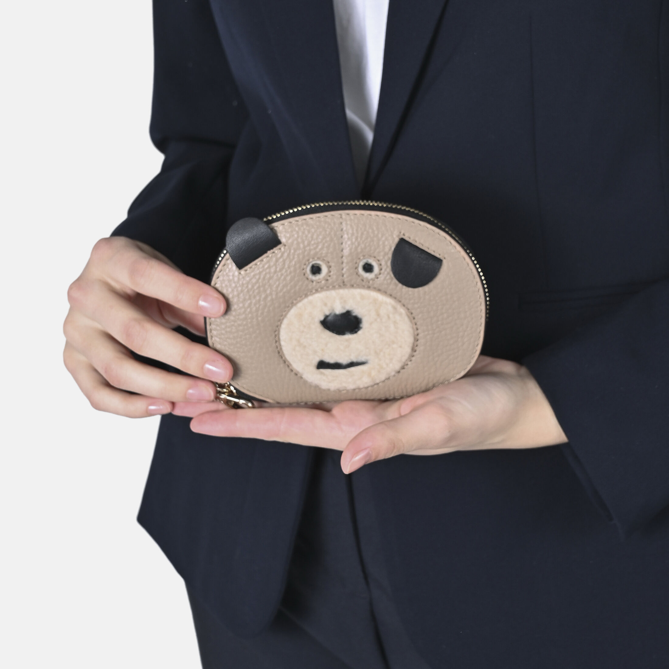 Portemonnaie Anhänger Etui Teddy aus Leder in Taupe
