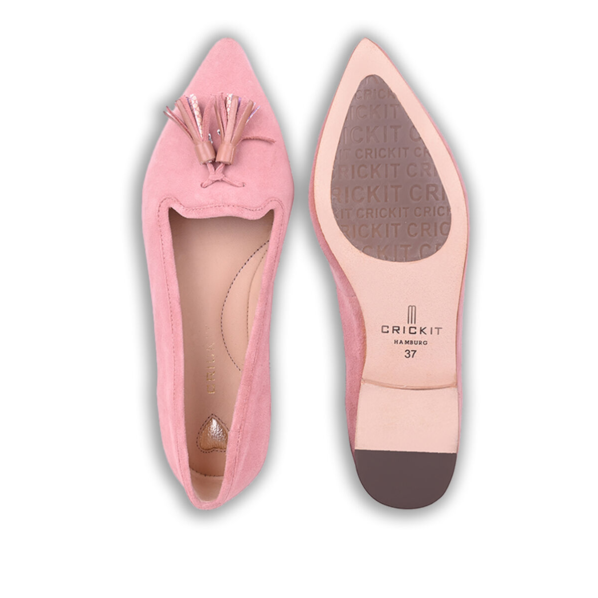 Die klassische Ballerina MARLA von CRICKIT überzeugt mit einem weichen Obermaterial aus Ziegenveloursleder in zartem Altrosa. Neben der exzellenten Passform und der Verwendung hochwertiger Materialien bietet MARLA ein Höchstmaß an Komfort. Die flexible Sohle ermöglicht einen unkomplizierten Einstieg, während die spezielle Sacchetto-Machart für besondere Beweglichkeit sorgt. Das chromfrei gegerbte Innenfutter macht MARLA nicht nur umweltfreundlich, sondern auch besonders geeignet für Allergiker.