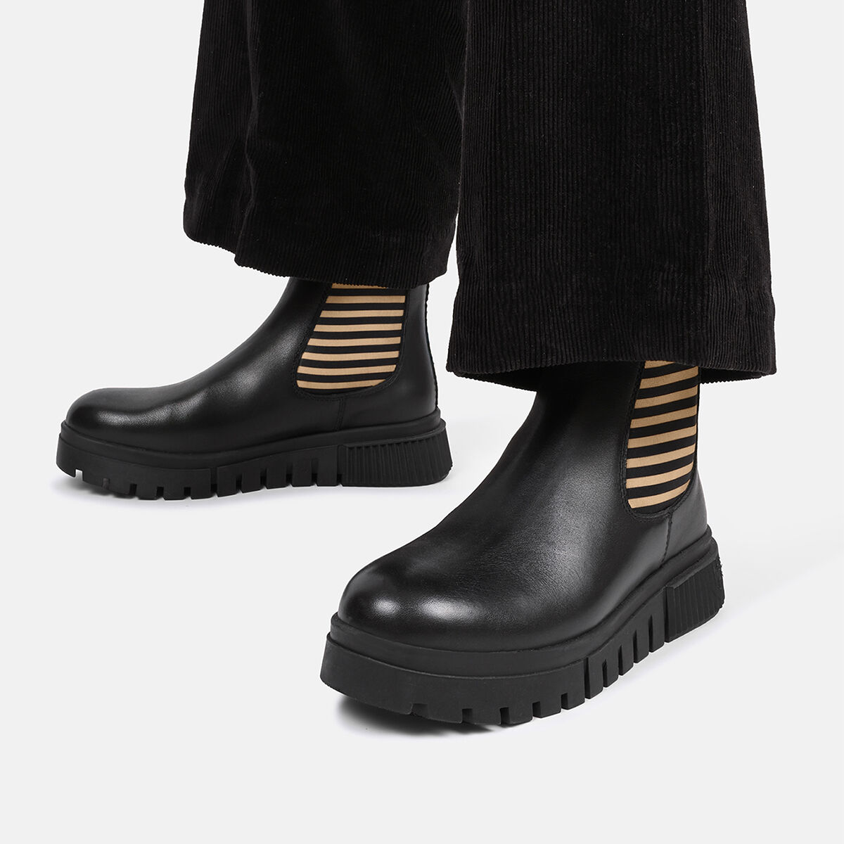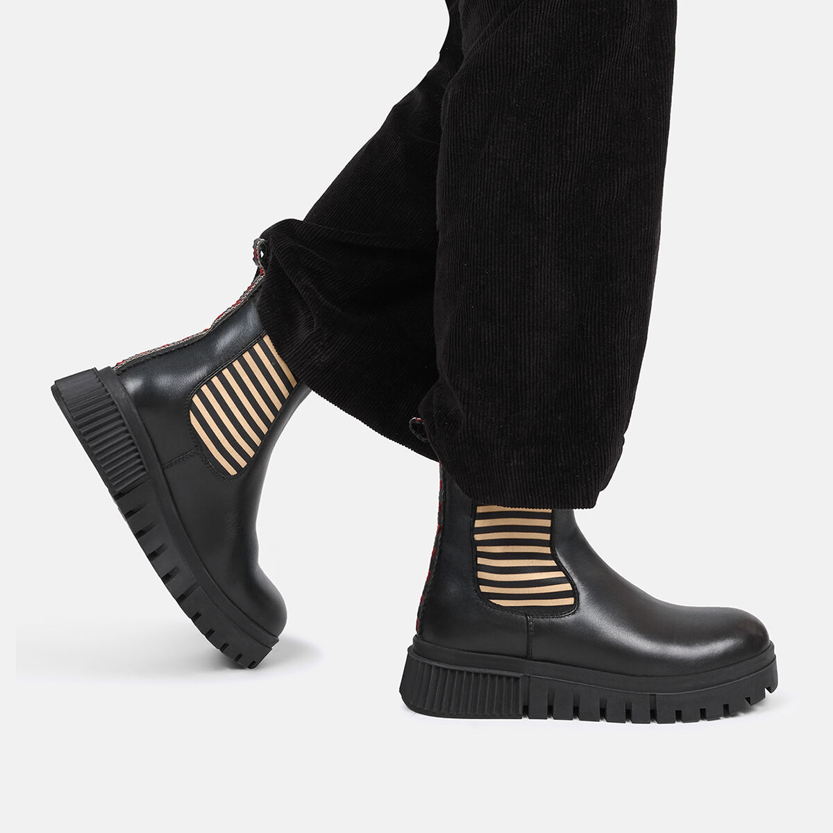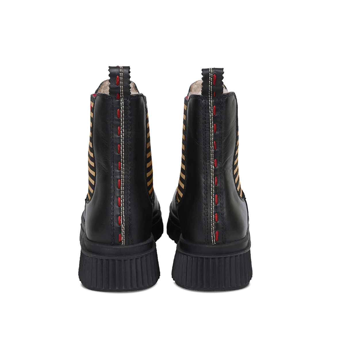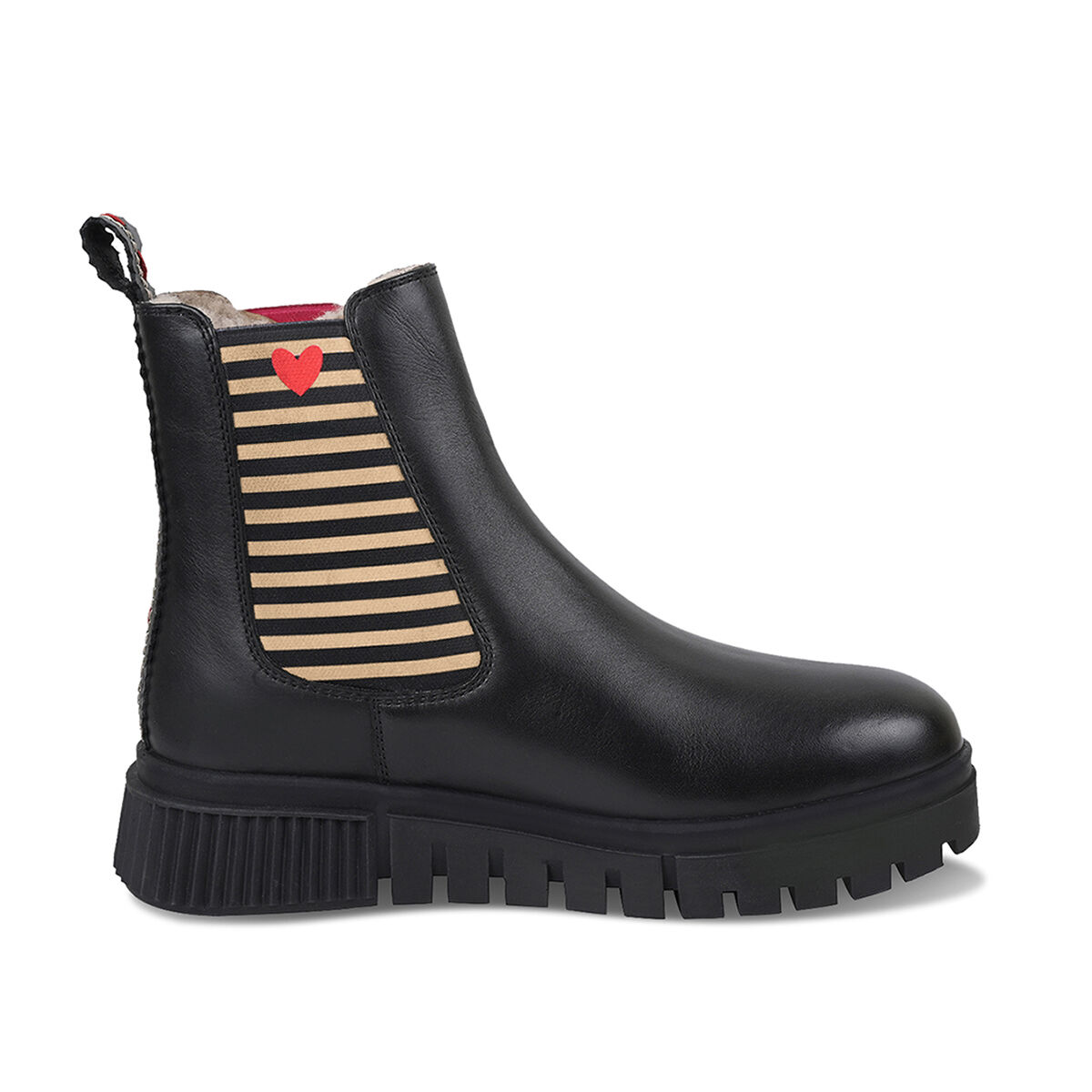 Die Stiefelette NAELLE überzeugt durch ihr besonders leichtes Design, das durch ausgewählte Materialien ermöglicht wird: Das pflegeleichte Obermaterial besteht aus Rindsleder, während die flexible Profilsohle aus TPR gefertigt ist. Ein herausnehmbares Wechselfußbett sorgt zusätzlich für individuellen Komfort. Das softe Leder in Schwarz und Elastikeinsätze mit Streifen und Herzchen erleichtern den Einstieg und setzen modische Akzente. Das Innenfutter ist kuschelig warm und aus 100% Lammfell- selbst die Elastiks sind von innen gefüttert, sodass die Knöchel warm bleiben. Ein weiteres Wiedererkennungsmerkmal ist die charakteristische CRICKIT-Naht an der Ferse von NAELLE.
