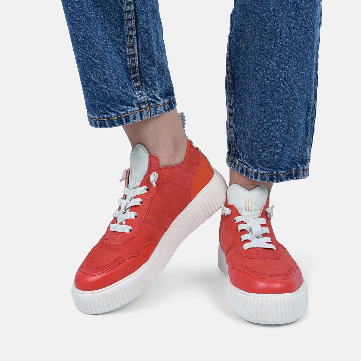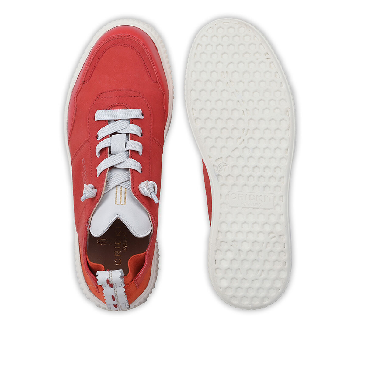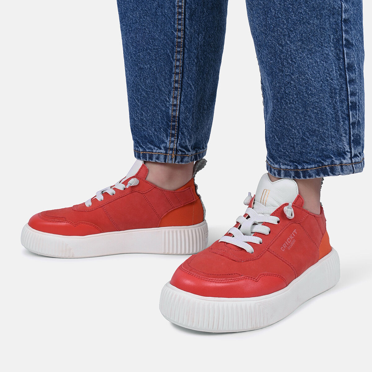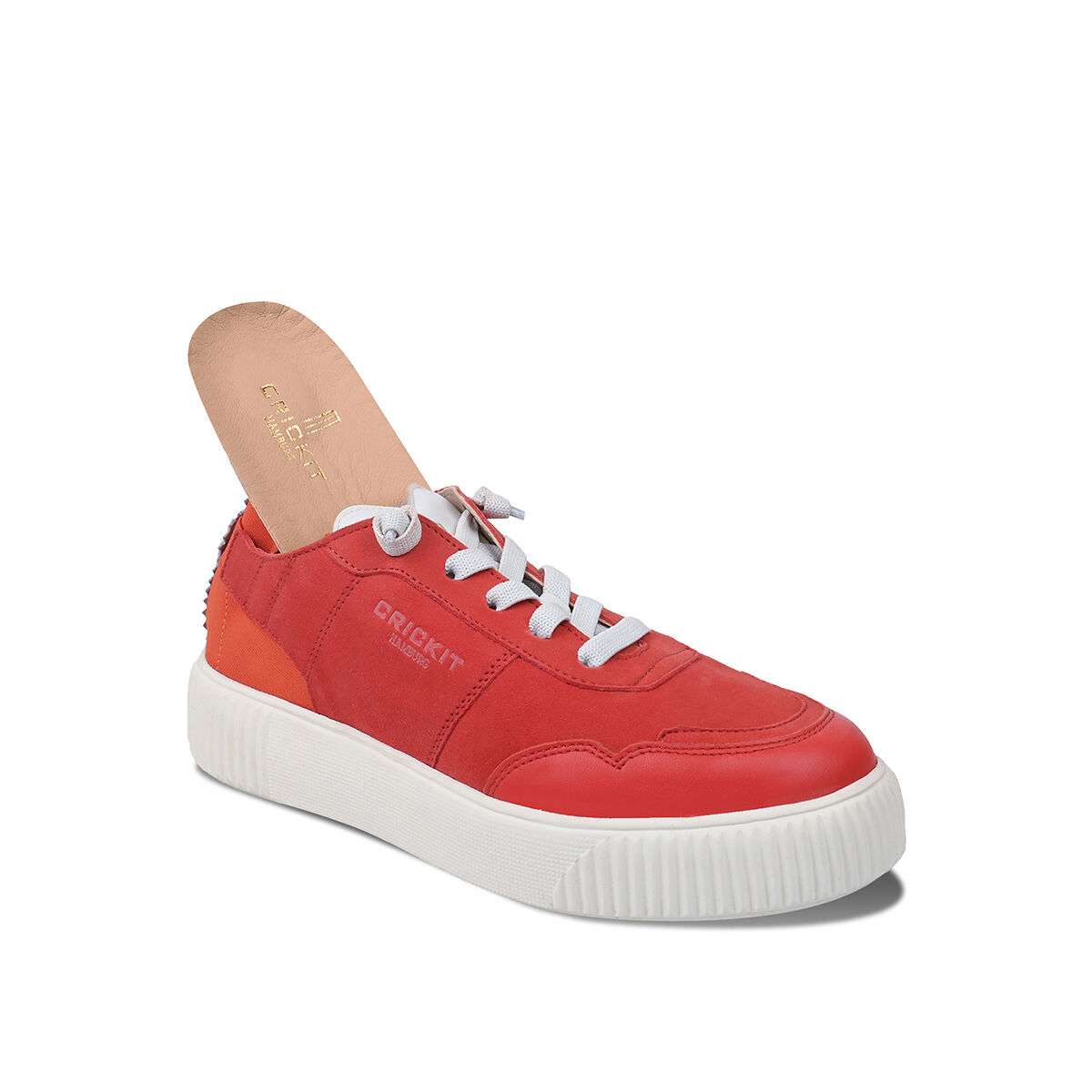 Der extra leichte Sneaker OAKLI kombiniert urbanen Stil mit nachhaltiger Qualität. Weiches Ziegen-Veloursleder und chromfrei gegerbtes Innenfutter sorgen für ein besonders angenehmes Tragegefühl. Das Obermaterial von OAKLI ist durch das knallige Rot ein echter Hingucker. Das chromfreie Innenfutter besonders allergikerfreundlich. Das flexible, herausnehmbare Fußbett und die ultraleichte Sohle aus EVA bieten hohen Komfort. EASY-IN-Technologie ermöglicht schnelles Hineinschlüpfen. Ein Sneaker, der Komfort, Stil und Umweltbewusstsein vereint.
