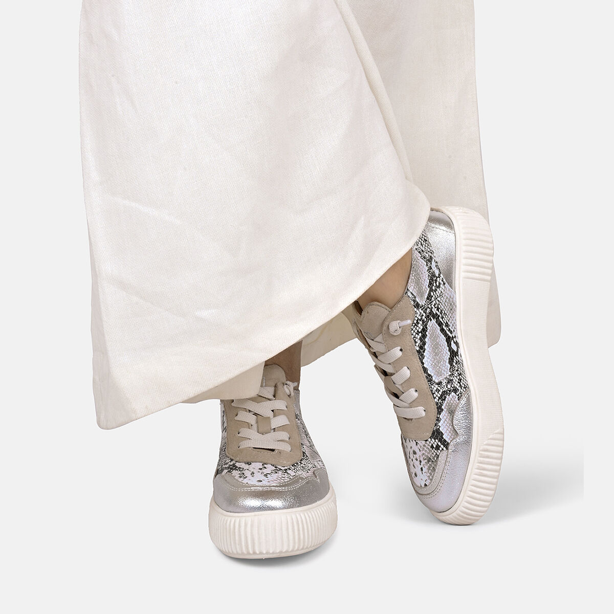 Der extra leichte Sneaker OAKLI kombiniert urbanen Stil mit nachhaltiger Qualität. Weiches Rindsleder und chromfrei gegerbtes Innenfutter sorgen für ein besonders angenehmes Tragegefühl. Das Obermaterial von OAKLI ist mit Schlangenprint und Silber ein echter Hingucker. Das chromfreie Innenfutter besonders allergikerfreundlich. Das flexible, herausnehmbare Fußbett und die ultraleichte Sohle aus EVA bieten hohen Komfort. EASY-IN-Technologie ermöglicht schnelles Hineinschlüpfen. Ein Sneaker, der Komfort, Stil und Umweltbewusstsein vereint.