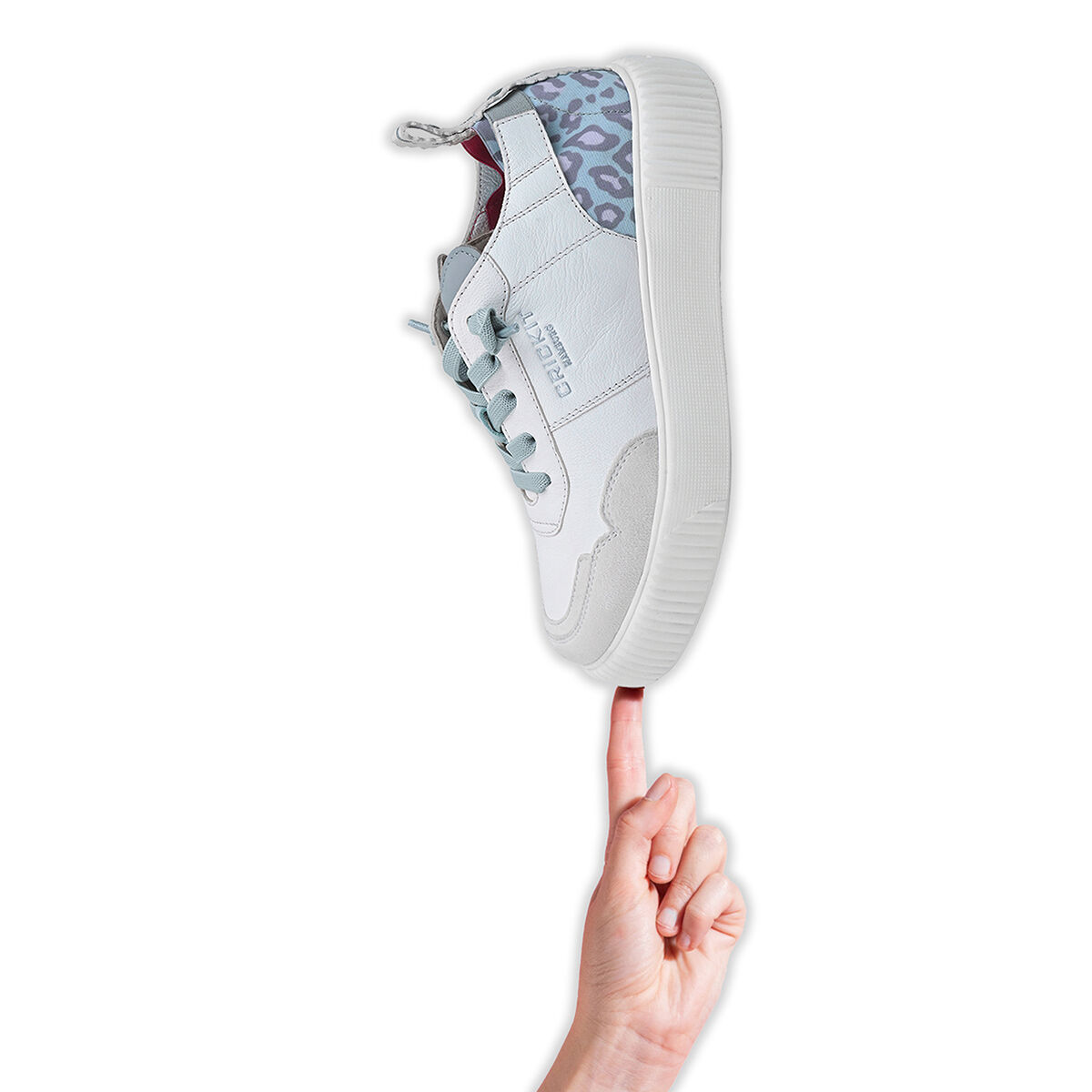 Der extra leichte Sneaker OAKLI kombiniert urbanen Stil mit nachhaltiger Qualität. Pflanzlich gegerbtes Ziegenleder und chromfrei gegerbtes Innenfutter sorgen für ein besonders angenehmes Tragegefühl. Das Obermaterial von OAKLI ist aus Weiss mit Elastikeinsätzen in Mint mit Schlangenprint. Das chromfreie Innenfutter besonders allergike freundlich. Das flexible, herausnehmbare Fußbett und die ultraleichte Sohle aus EVA bieten hohen Komfort. EASY-IN-Technologie ermöglicht schnelles Hineinschlüpfen. Ein Sneaker, der Komfort, Stil und Umweltbewusstsein vereint.
