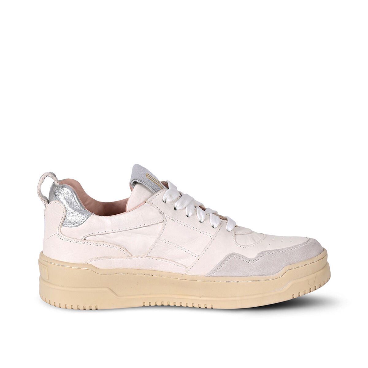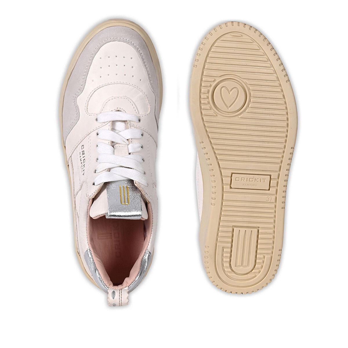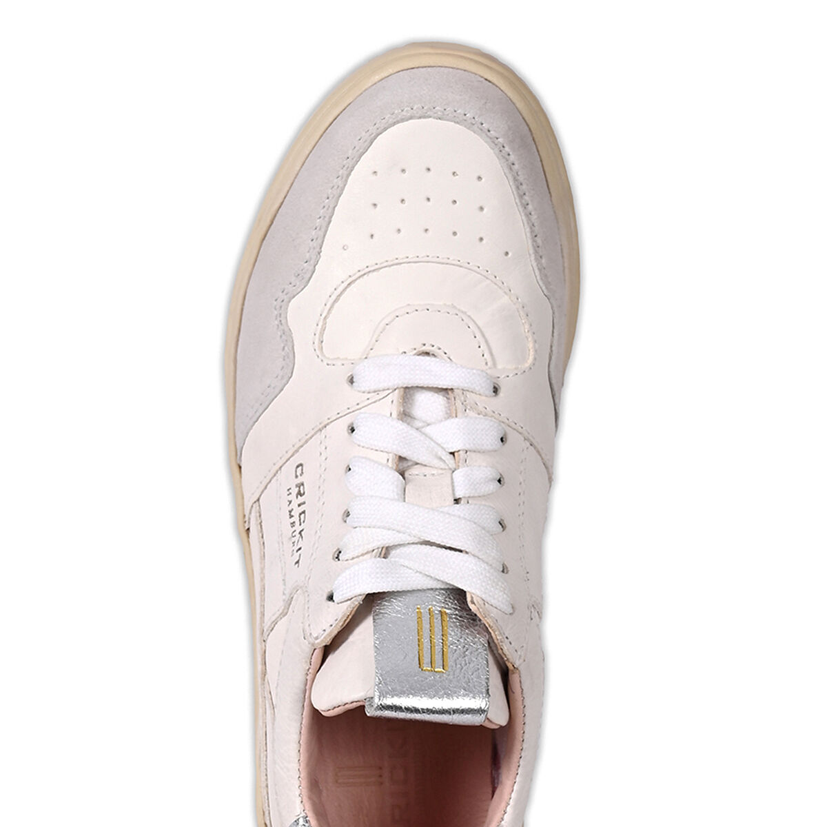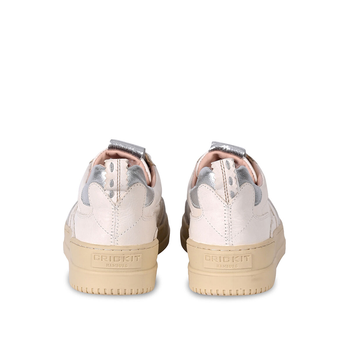 Sneaker Turnschuh Low aus Ziegenleder in Weiss und Silber