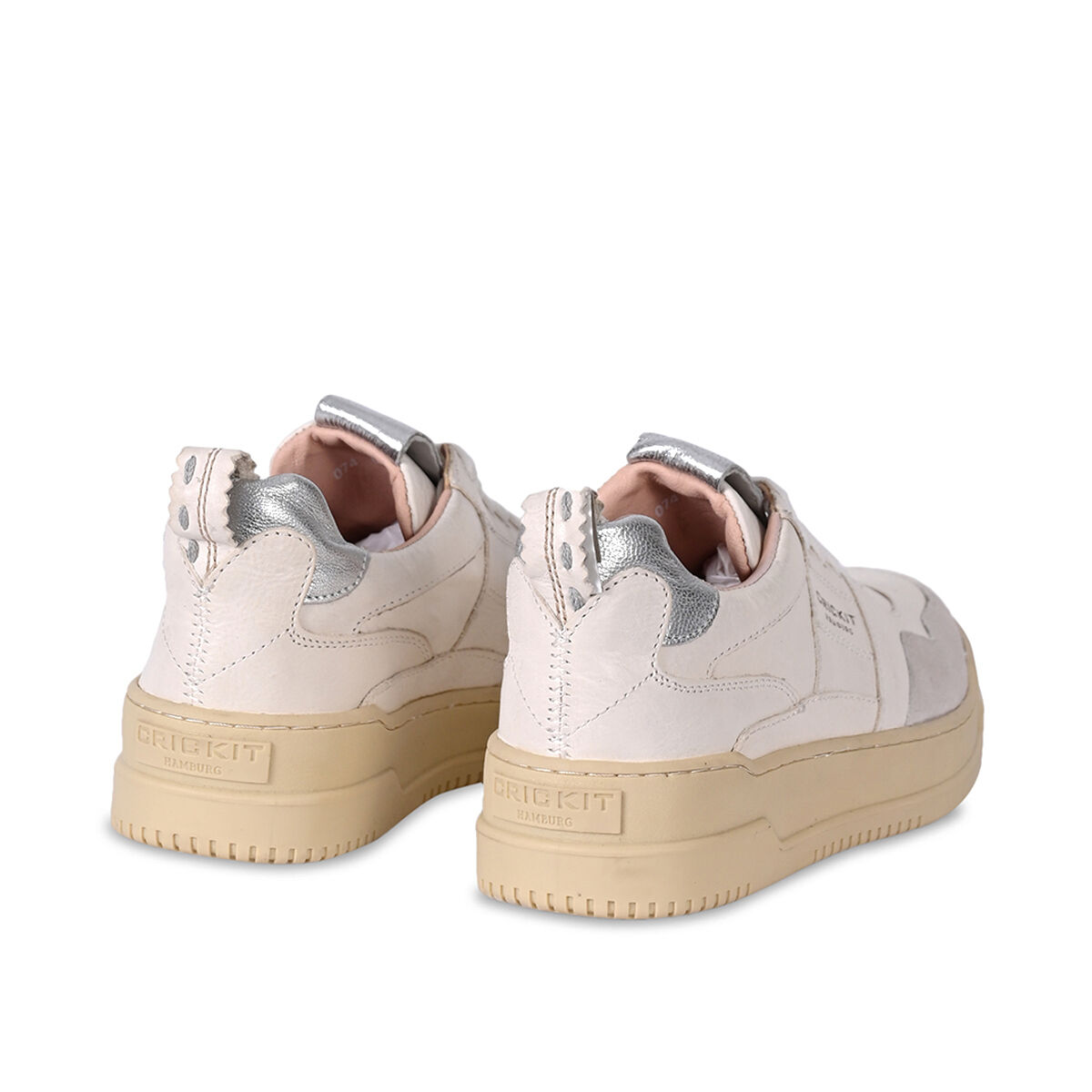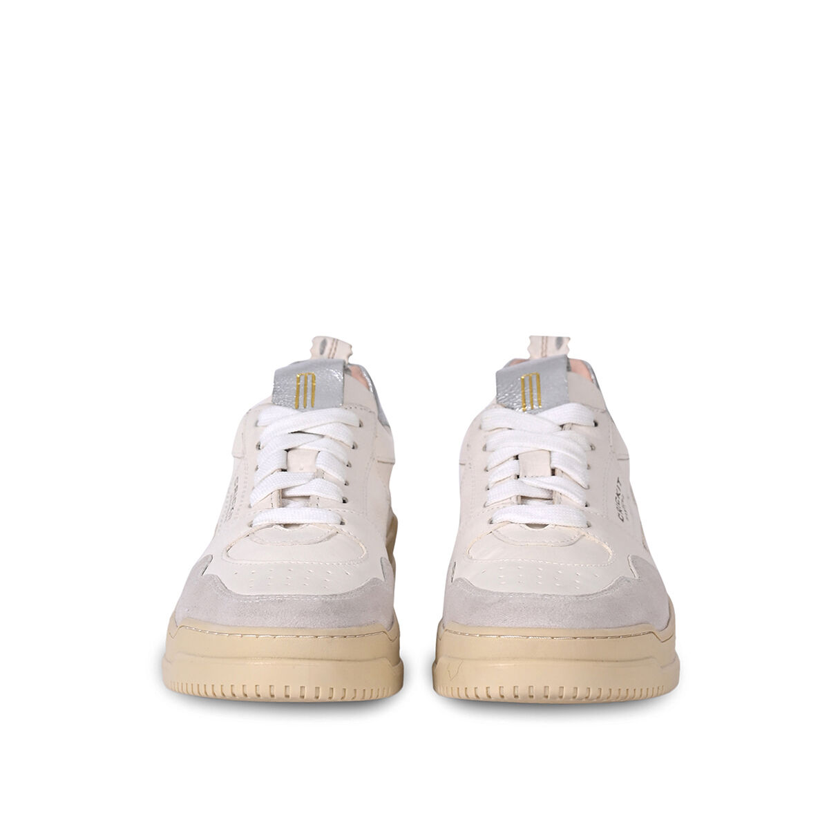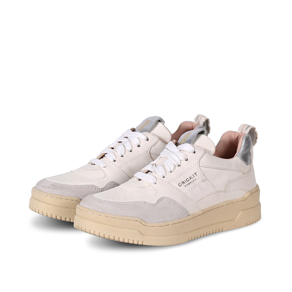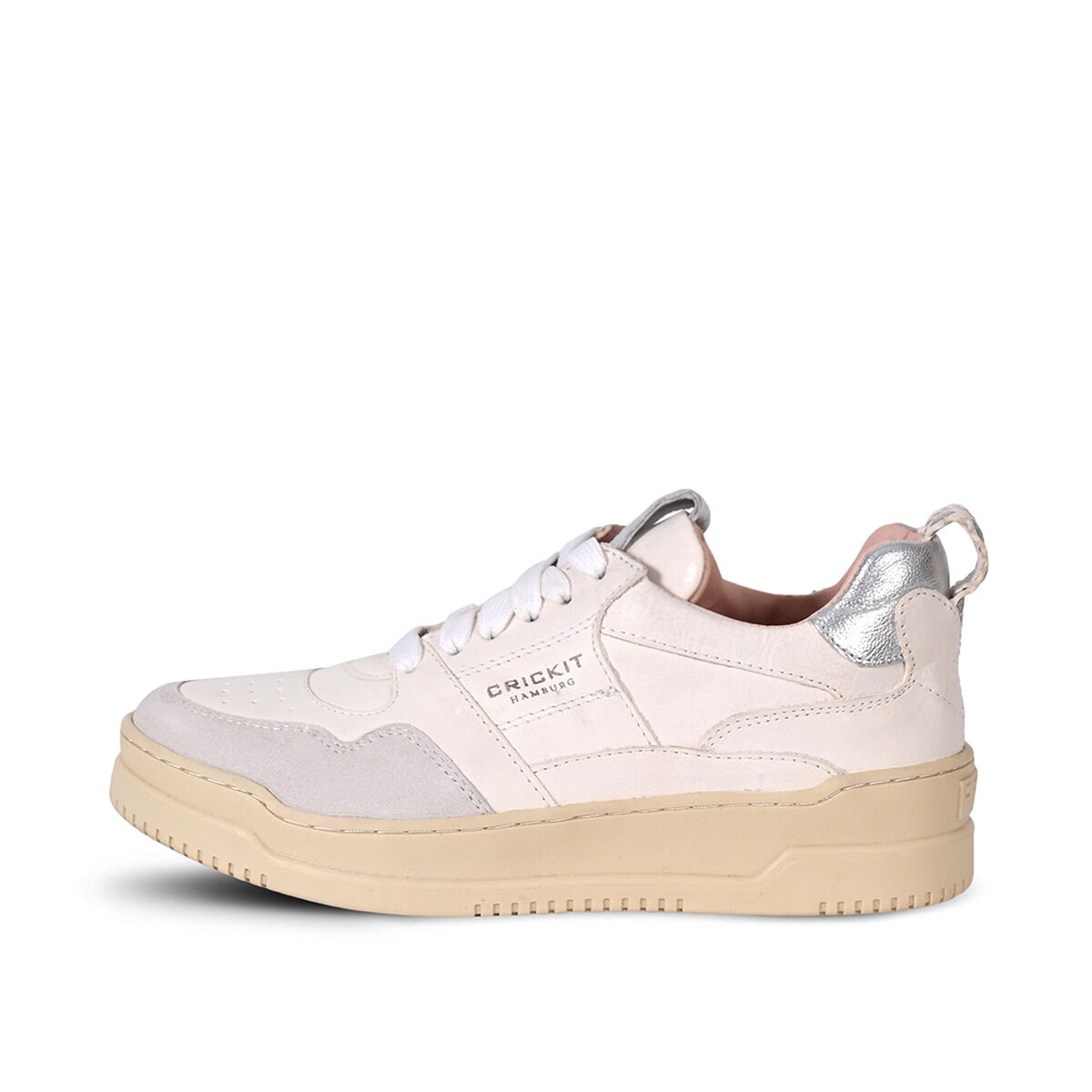 Sneaker Turnschuh Low aus Ziegenleder in Weiss und Silber