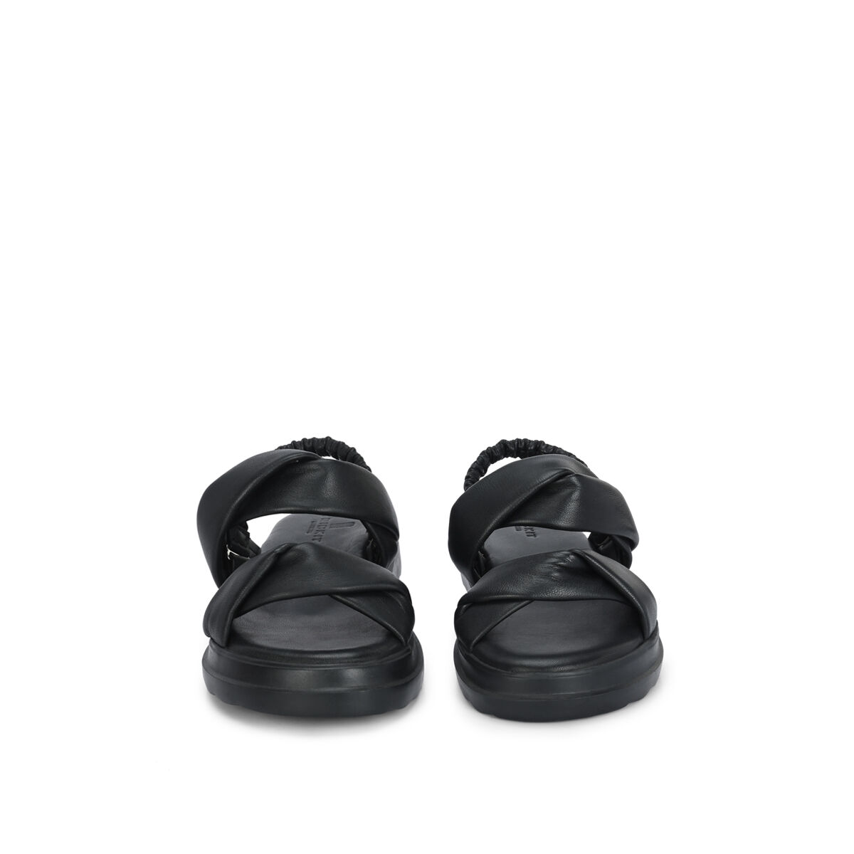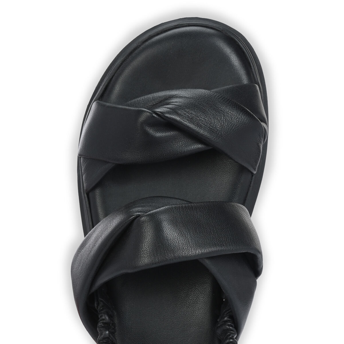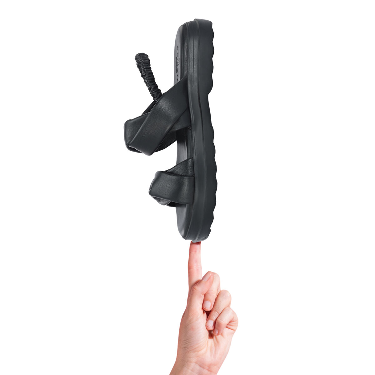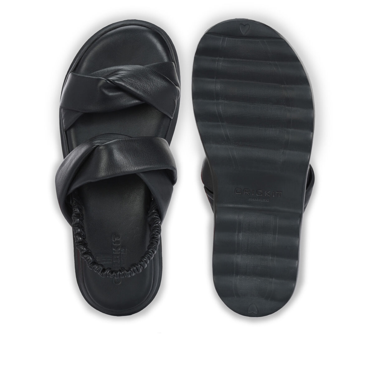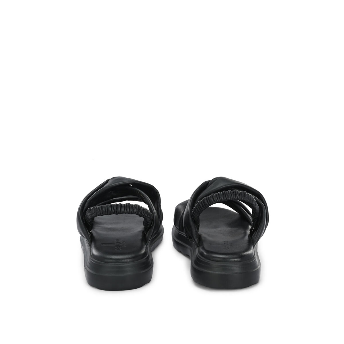 Klassische Sandale aus Ziegenleder in Schwarz mit Riemchen und abnehmbaren Gummi