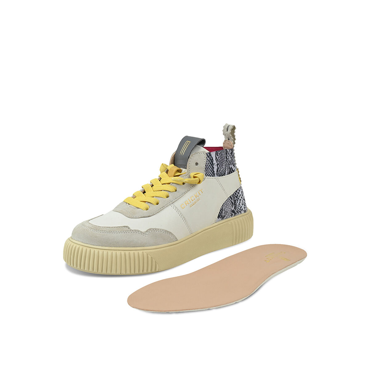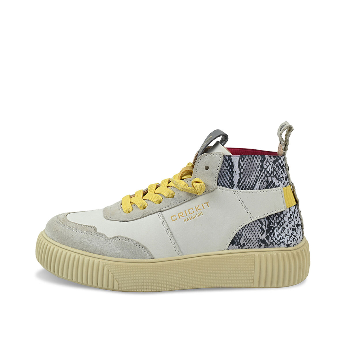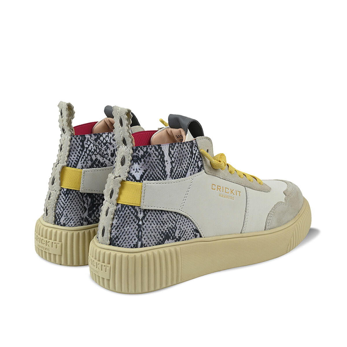 Der extra leichte Midcut-Sneaker REBEKA kombiniert urbanen Stil mit nachhaltiger Qualität. Das Obermaterial in Weiß mit wildem Schlangenprint aus weichem Rindsleder und das chromfrei gegerbte Innenfutter sorgen für ein besonders angenehmes Tragegefühl. Zusätzlich ist das chromfreie Innenfutter besonders allergikerfreundlich. Das flexible, herausnehmbare Fußbett und die ultraleichte Sohle aus EVA bieten hohen Komfort. Die EASY-IN-Technologie mit elastischen Schnürsenkeln ermöglicht ein schnelles Hineinschlüpfen. Durch den Klettverschluss an der Ferse wird dem Schuh der optimale Halt verliehen. REBEKA ist der Sneaker, der Komfort, Stil und Umweltbewusstsein vereint.