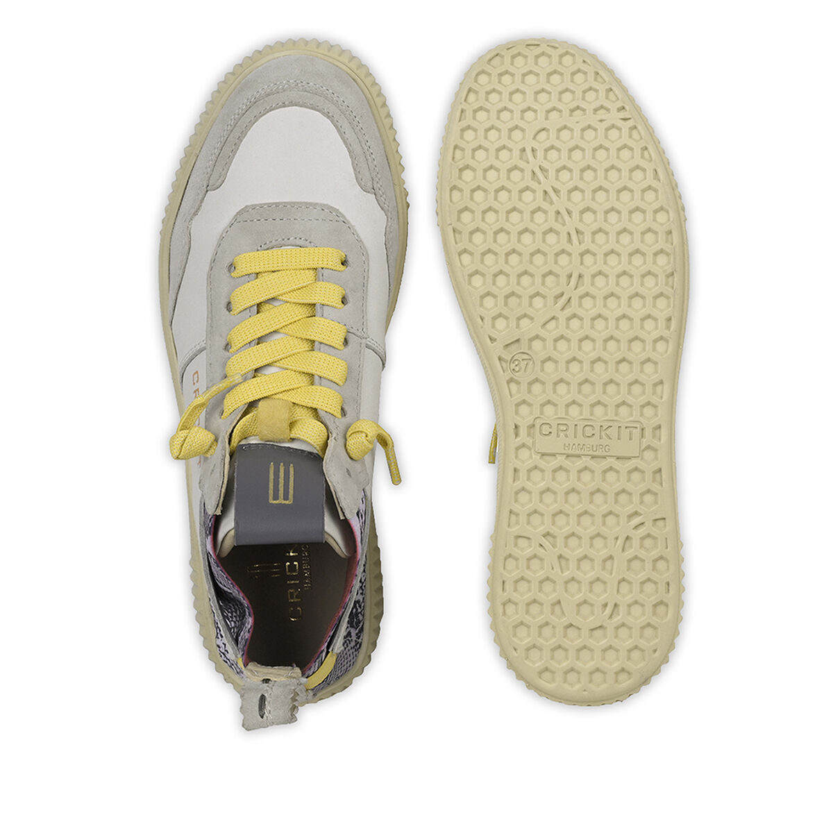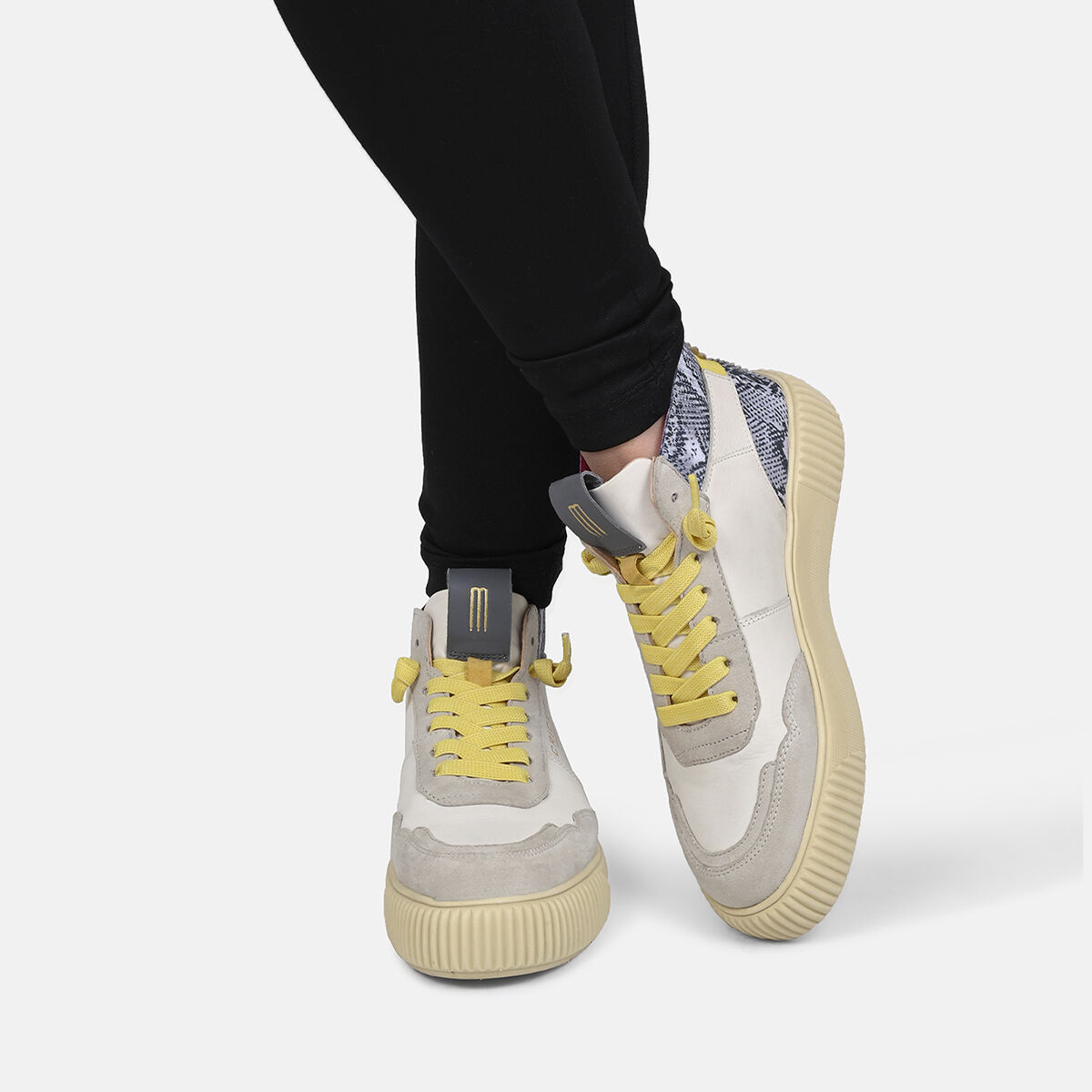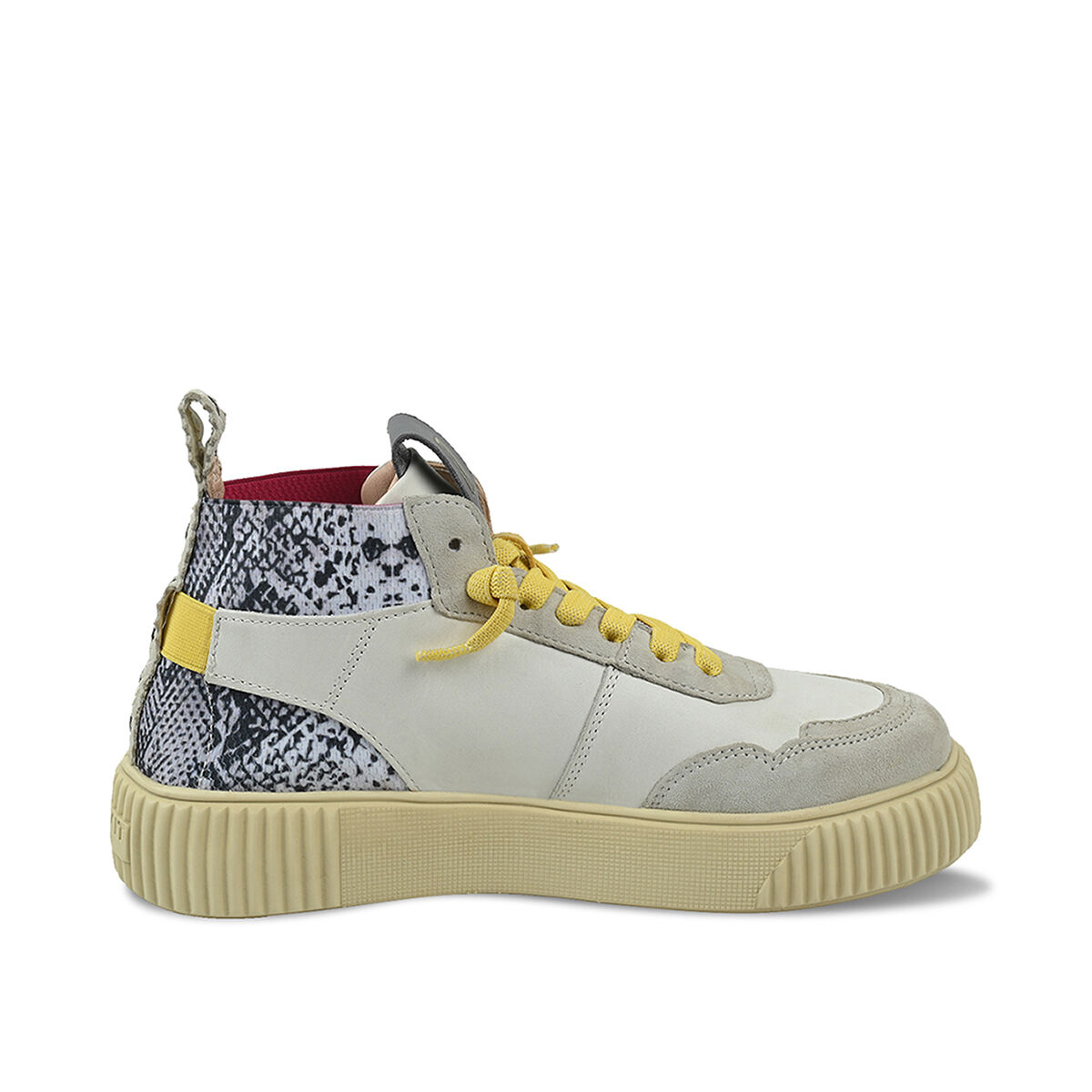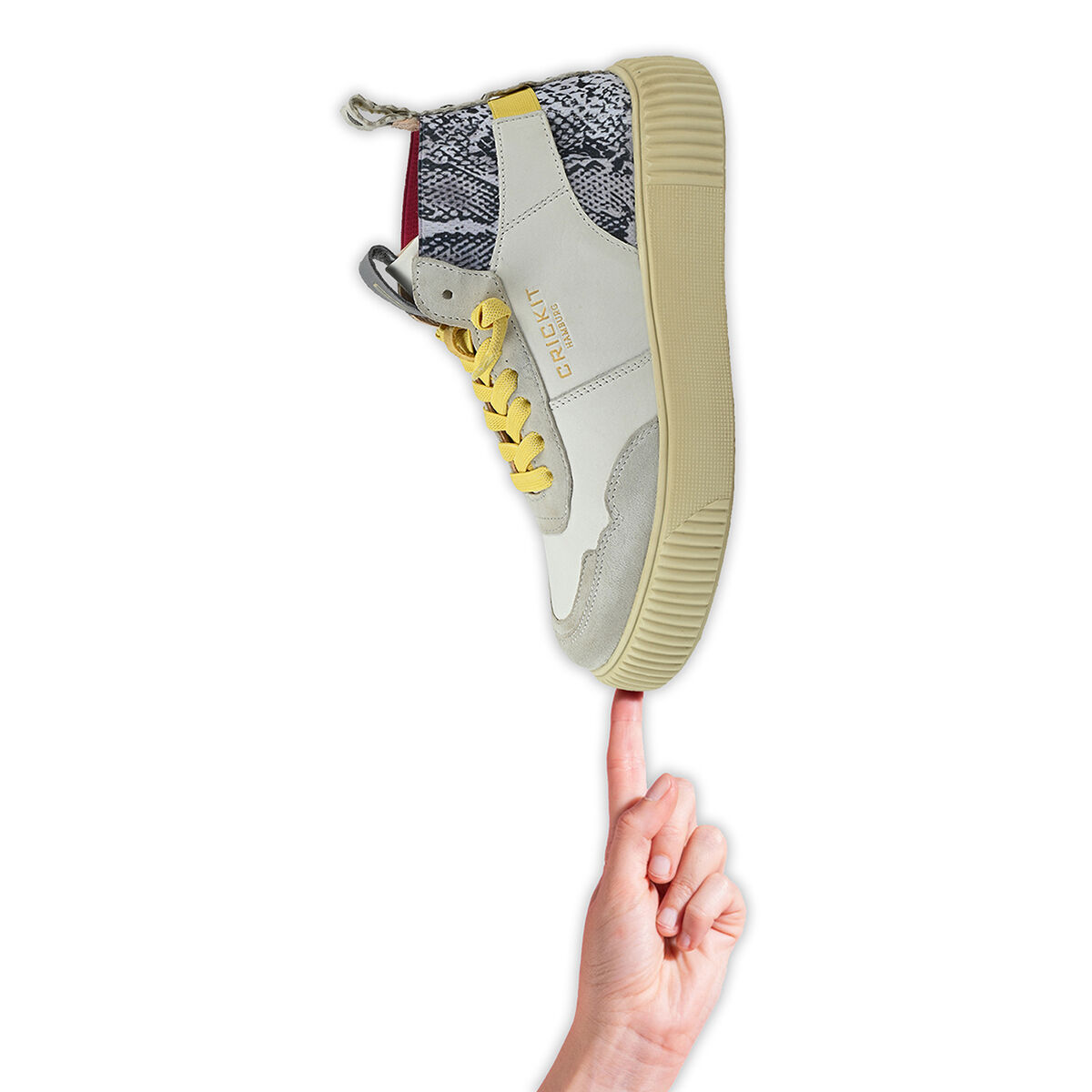 Der extra leichte Midcut-Sneaker REBEKA kombiniert urbanen Stil mit nachhaltiger Qualität. Das Obermaterial in Weiß mit wildem Schlangenprint aus weichem Rindsleder und das chromfrei gegerbte Innenfutter sorgen für ein besonders angenehmes Tragegefühl. Zusätzlich ist das chromfreie Innenfutter besonders allergikerfreundlich. Das flexible, herausnehmbare Fußbett und die ultraleichte Sohle aus EVA bieten hohen Komfort. Die EASY-IN-Technologie mit elastischen Schnürsenkeln ermöglicht ein schnelles Hineinschlüpfen. Durch den Klettverschluss an der Ferse wird dem Schuh der optimale Halt verliehen. REBEKA ist der Sneaker, der Komfort, Stil und Umweltbewusstsein vereint.