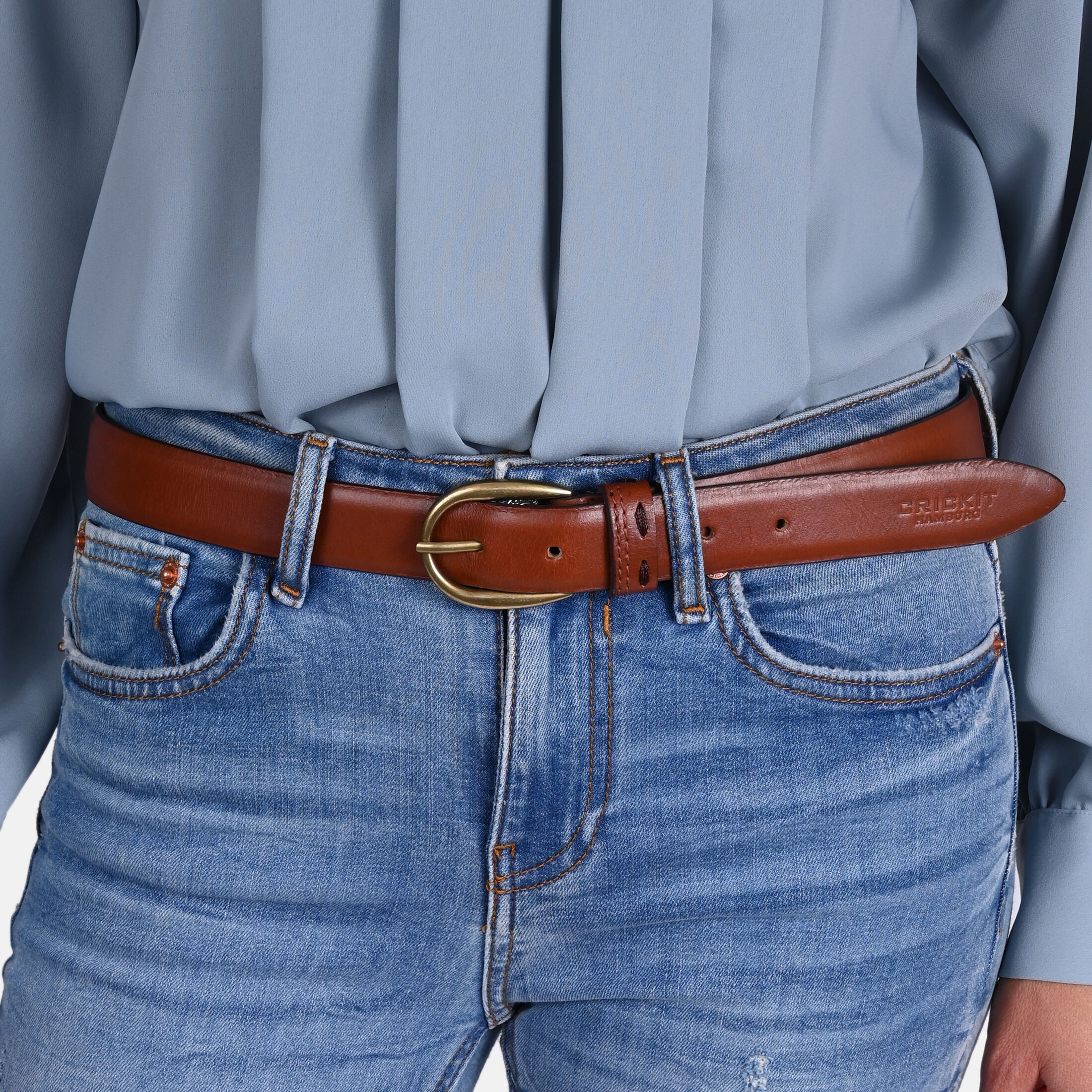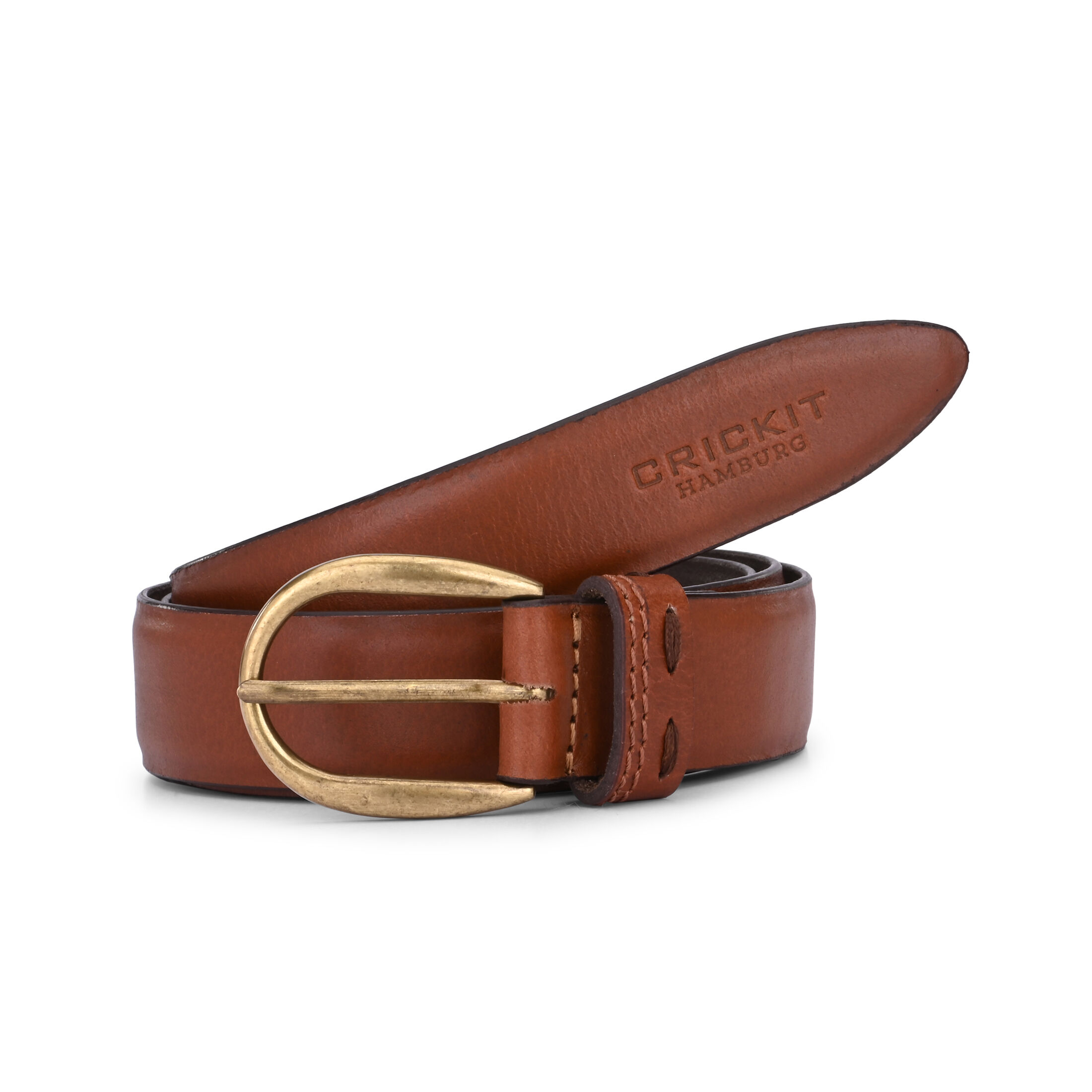 Gürtel aus Leder in Cognac mit gold gebürsteter Schnalle