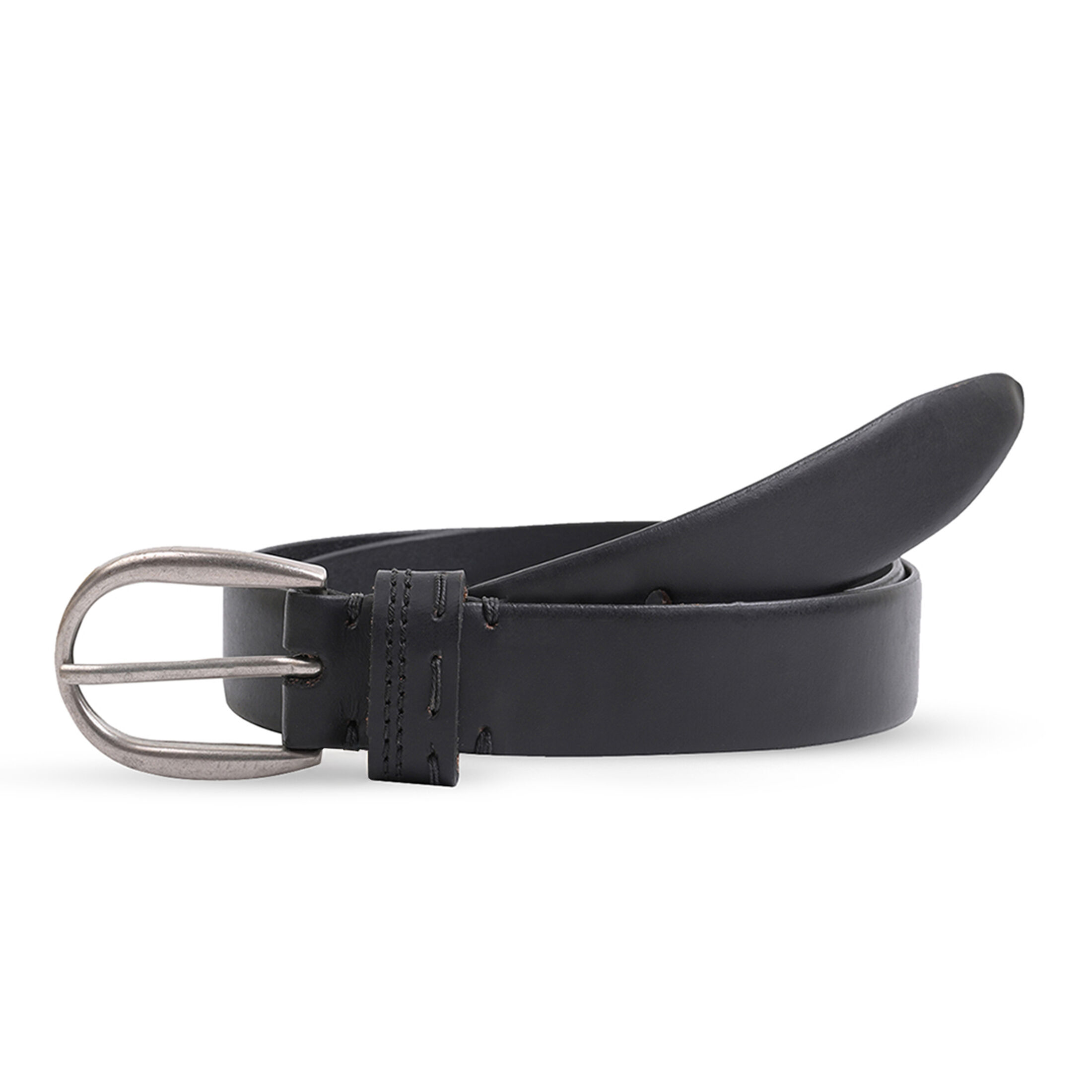 Gürtel aus Leder in Schwarz mit silberner Schnalle