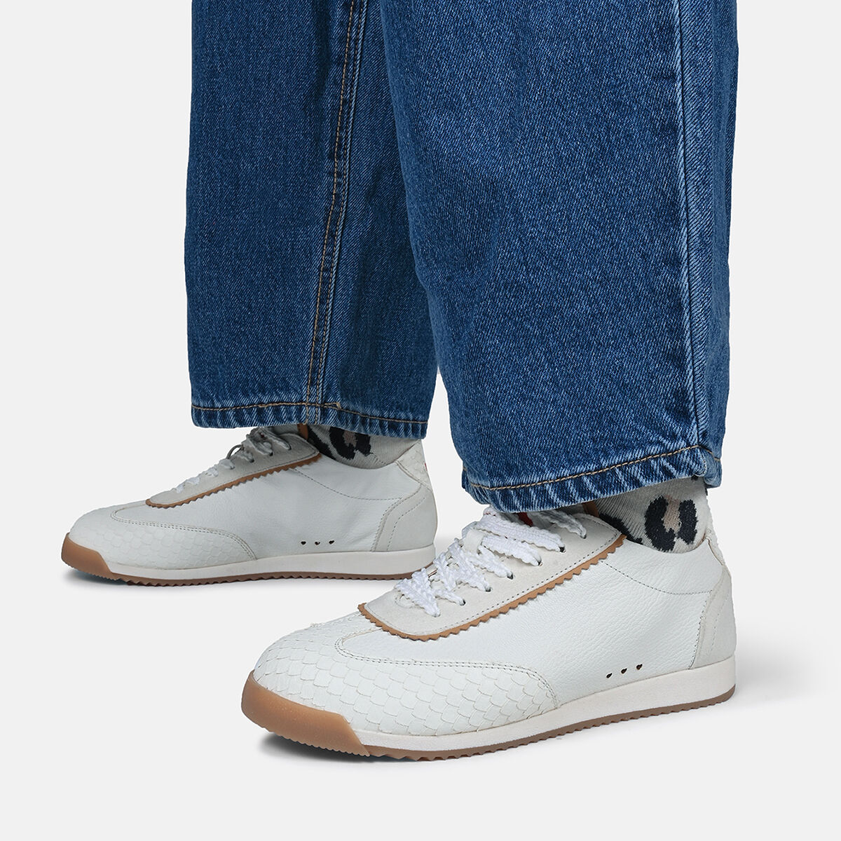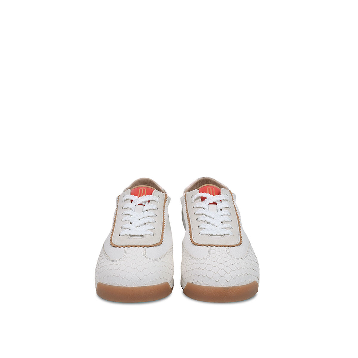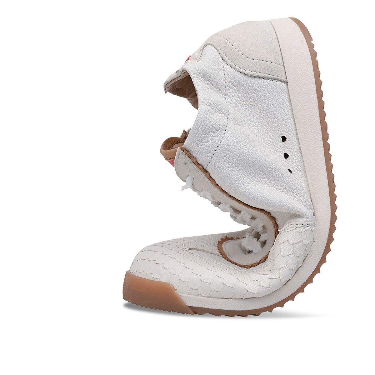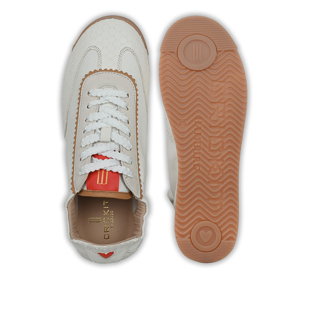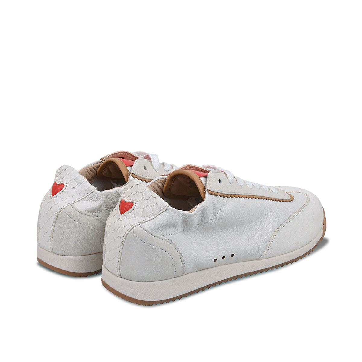 TARA überzeugt mit minimalistischem Retro-Charme. Die strukturierte und leichte Sohle sorgt für den nötigen Grip. Das softe Obermaterial des Sneakers ist aus weichem Ziegenleder und wird durch die weiße Farbe mit roten Elementen und Schlangenprint zum absoluten Hingucker! Ein Sneaker in Ballerina-Optik. Feminin und sportiv zugleich. Ein herausnehmbares Wechselfußbett schafft zusätzliche Flexibilität, etwa für eigene Einlagen oder individuellen Tragekomfort. Besondere Designelemente wie die kleine Herzaustanzung und der umstickte Schnürsenkel machen den Sneaker einzigartig!